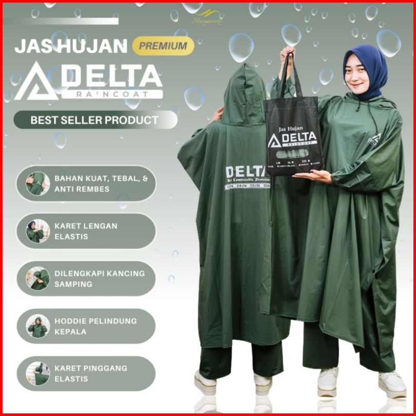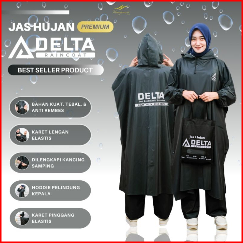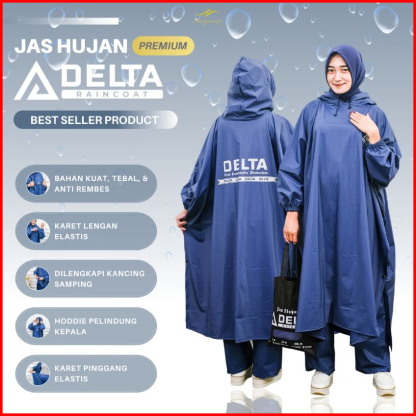 Delta - Jas Hujan Ponco Kelelawar Celana Pria Wanita Dewasa Tebal Elastis Premium Waterproof