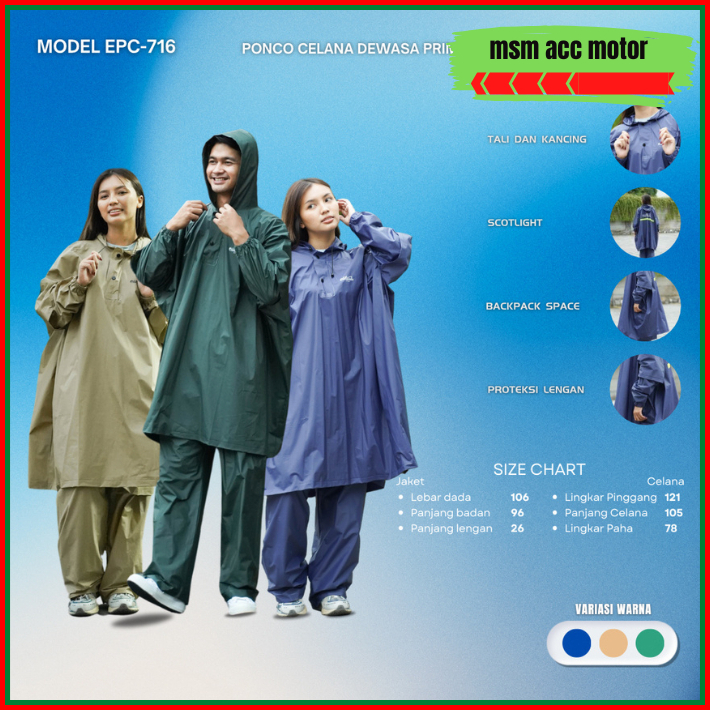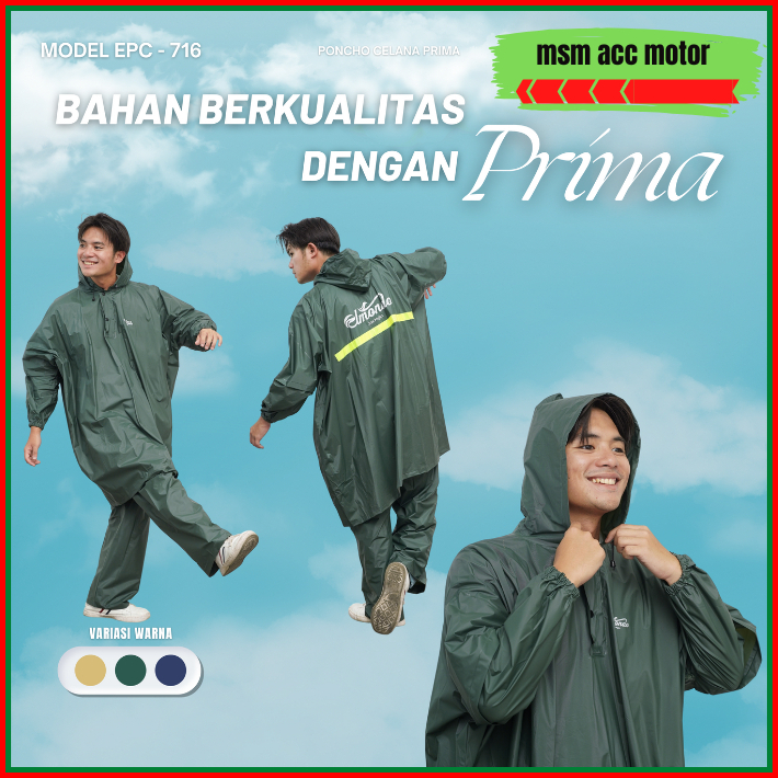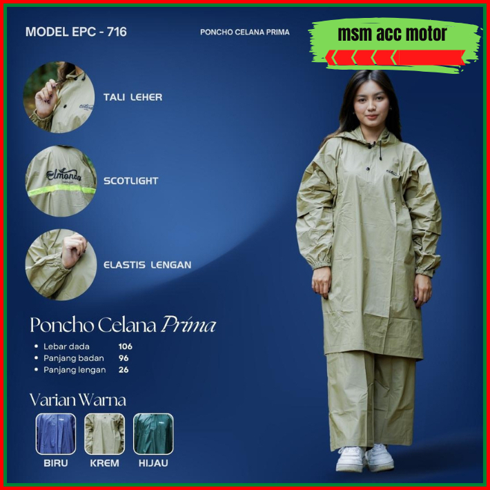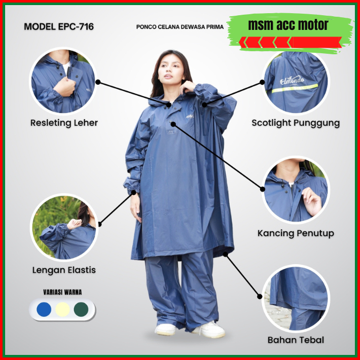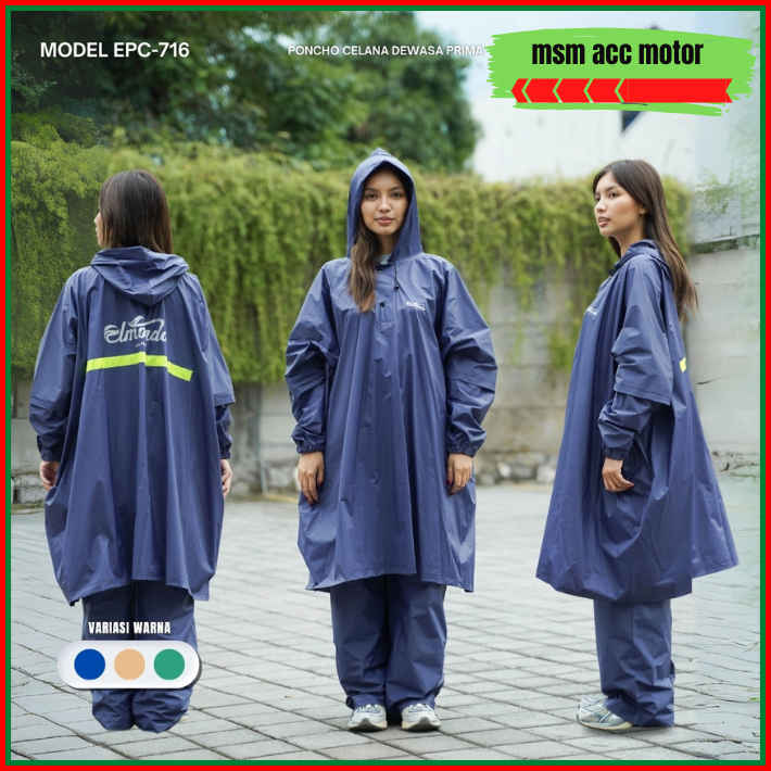 Jas Hujan Ponco Celana Elmondo Prima 716 Premium Mantel Stelan Poncho Lengan Dewasa Pria Dan Wanita