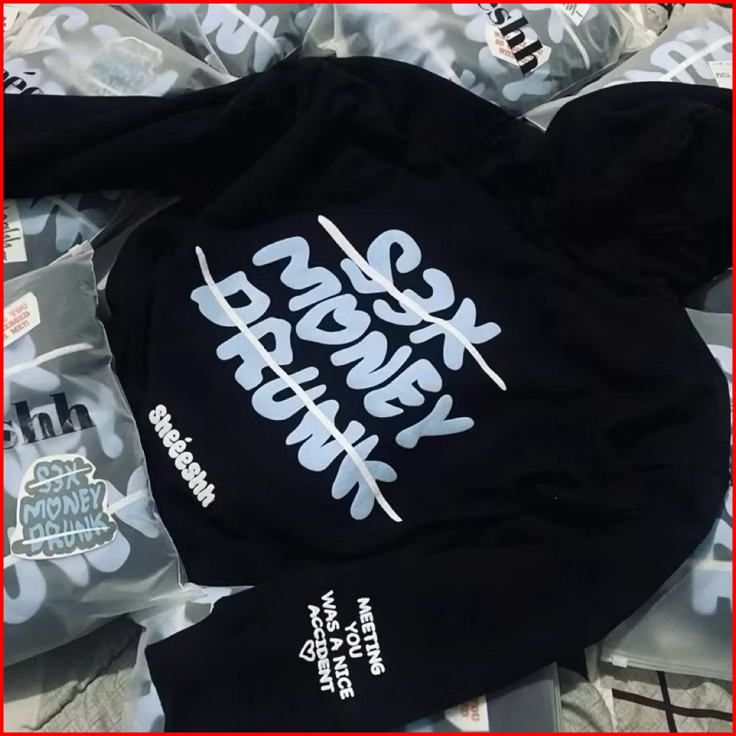 Hoodie Boxy S3x Money Drunk Blue 300gsm Jaket Jumper Pria Wanita Free Sticker