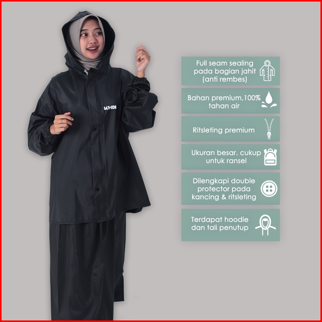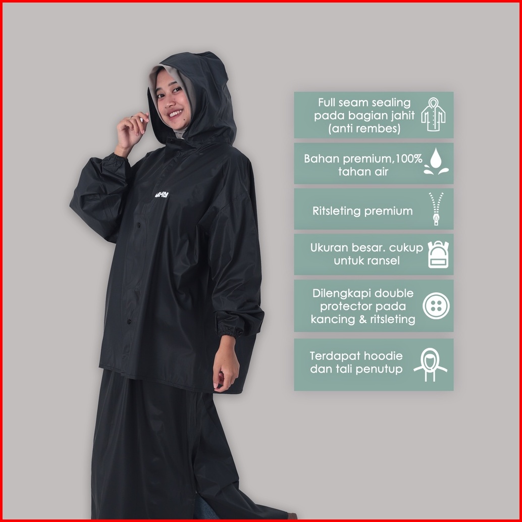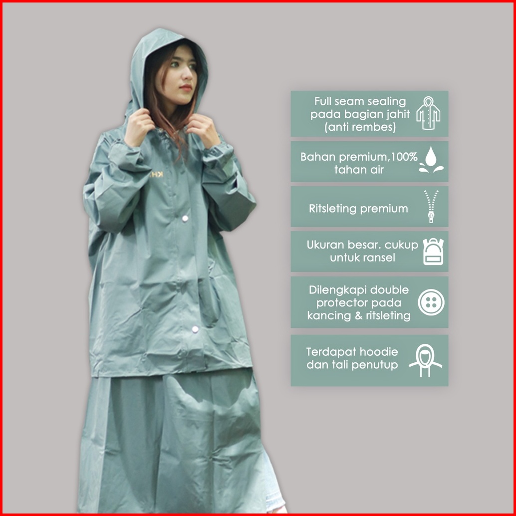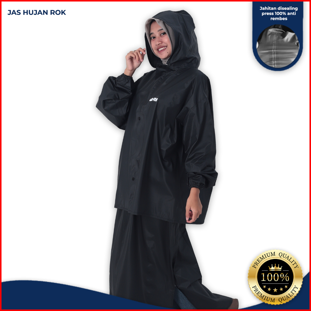 Jas Hujan Raincoat Wanita Rok Khn Tebal Berkwalitas Premium Anti Rembes Muslimah Hijaber