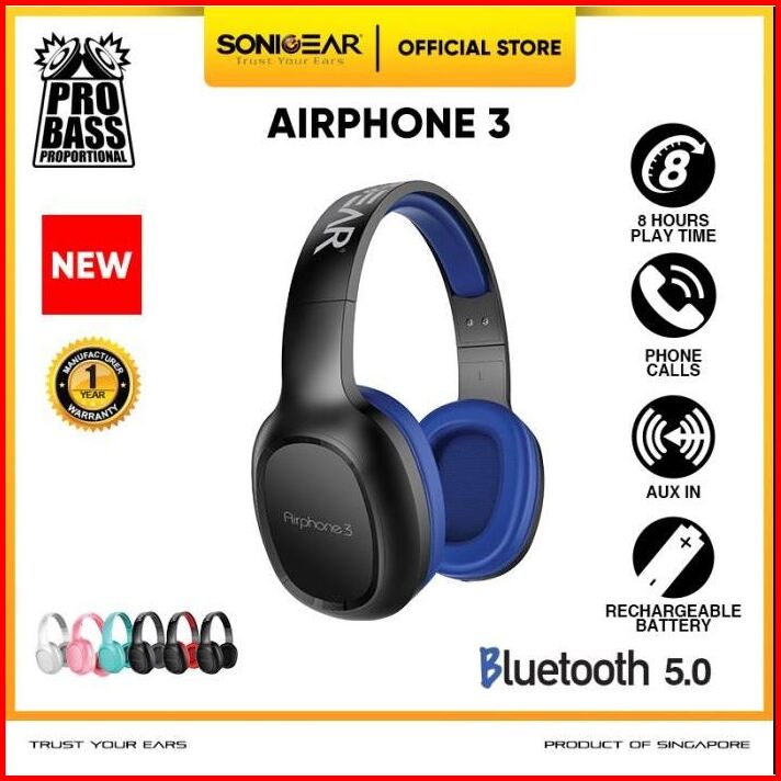 Headphone Bluetooth Sonicgear Airphone 3 Headset Bluetooth 5.0 Build In Microphone - Garansi Resmi 1 Tahun