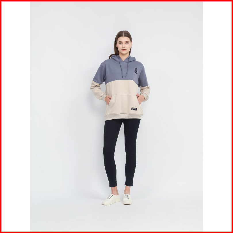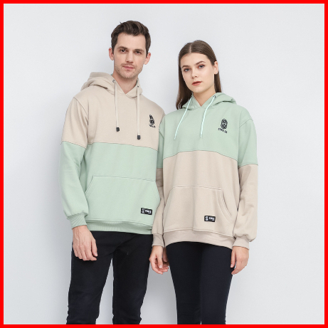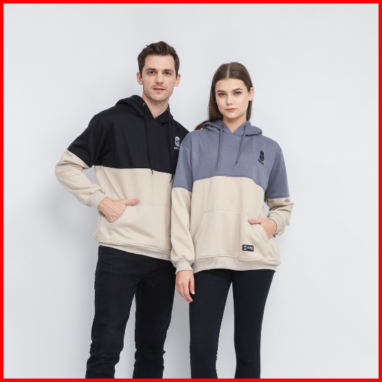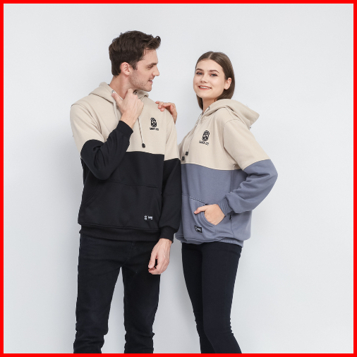 Suke - Jaket Sweater Hoodie Pria Combi Cream Hitam Unisex Premium