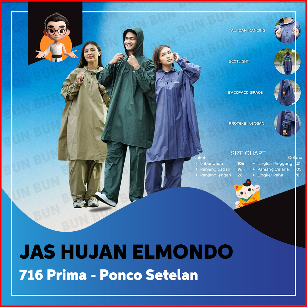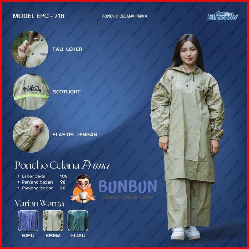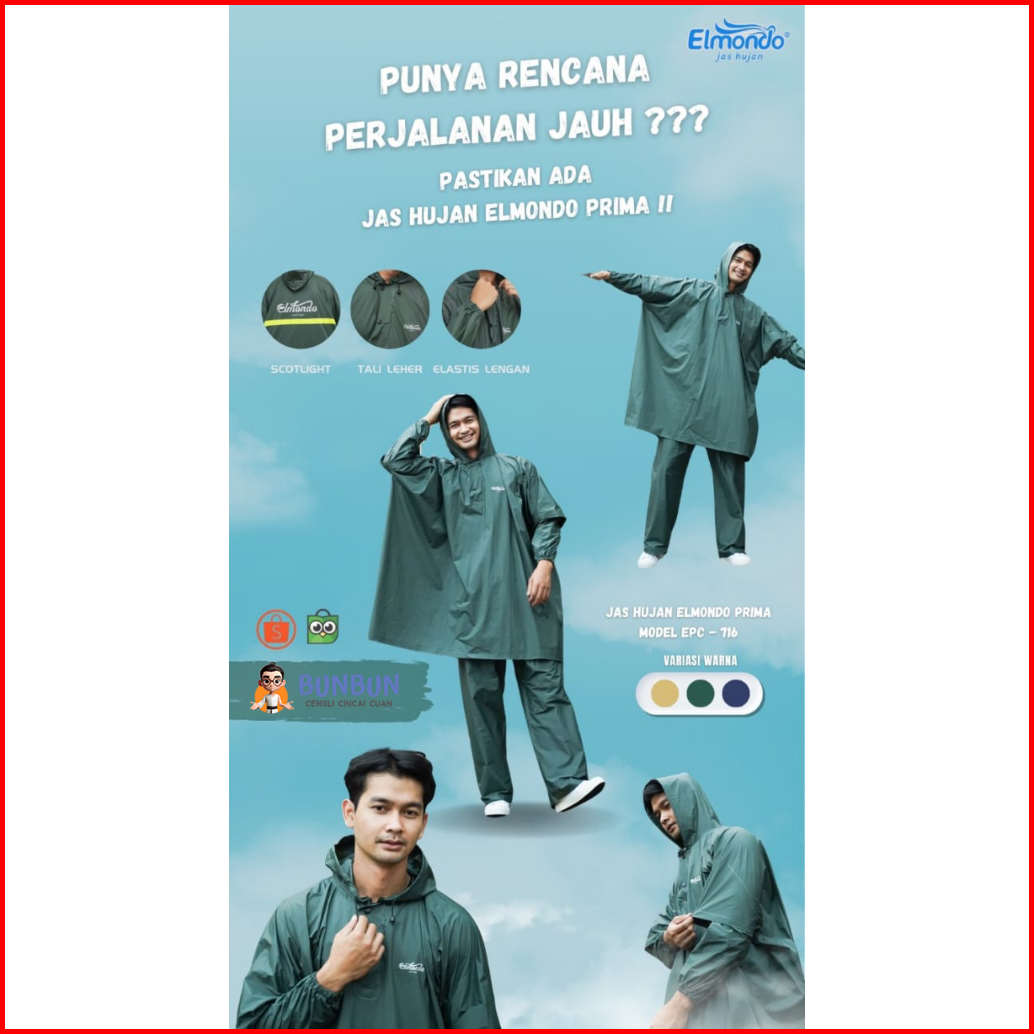 Jas Hujan Elmondo 716 Prima - Ponco Setelan - Mantel Hujan Dewasa Unisex Rain Coat Murah