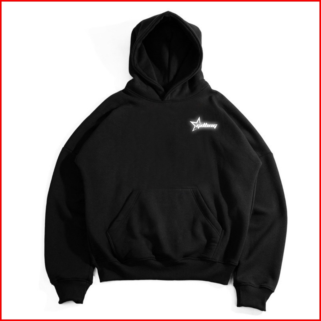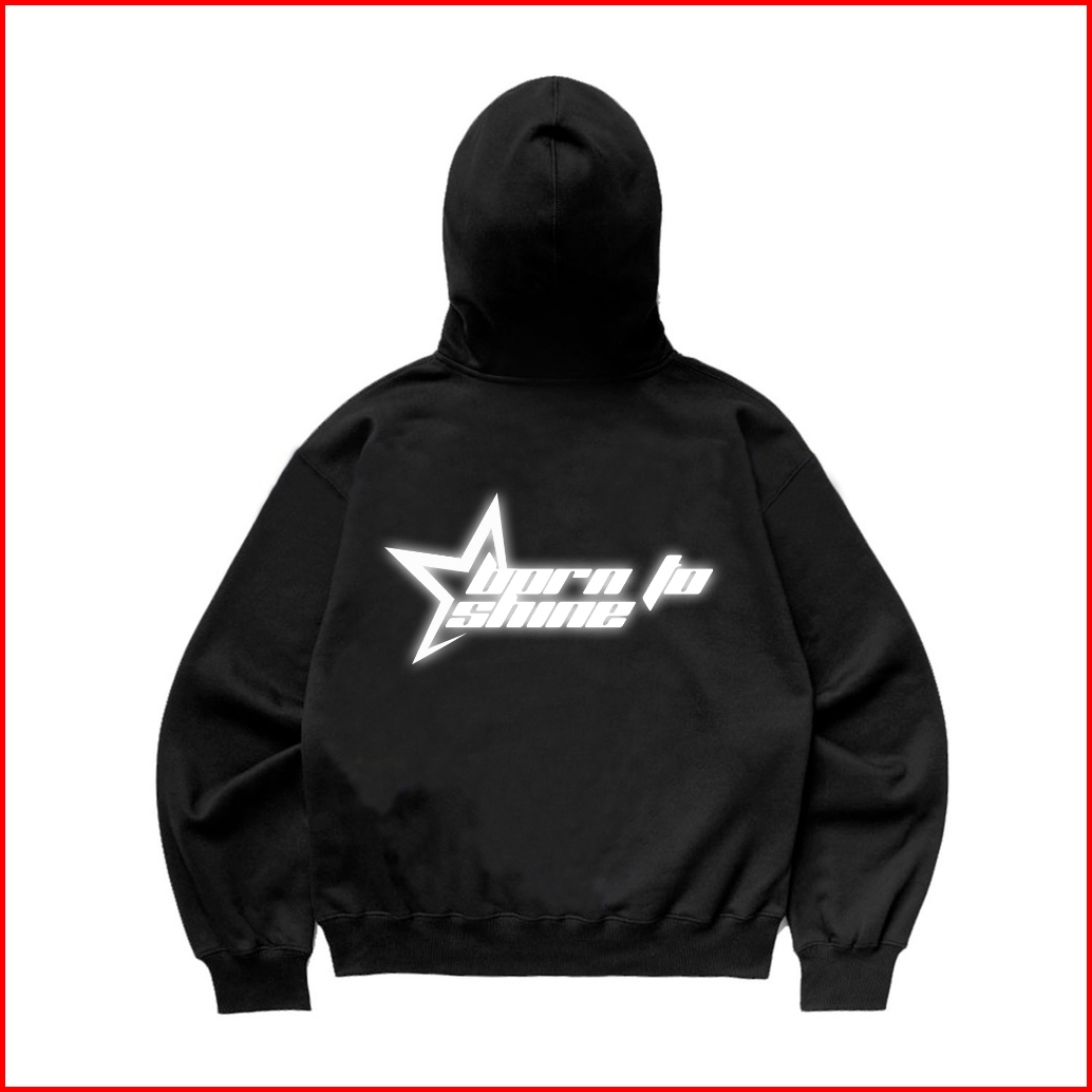 Gadabang Hoodie Boxy Oversize Menyala Sablon Reflective Born To Shine Hitam