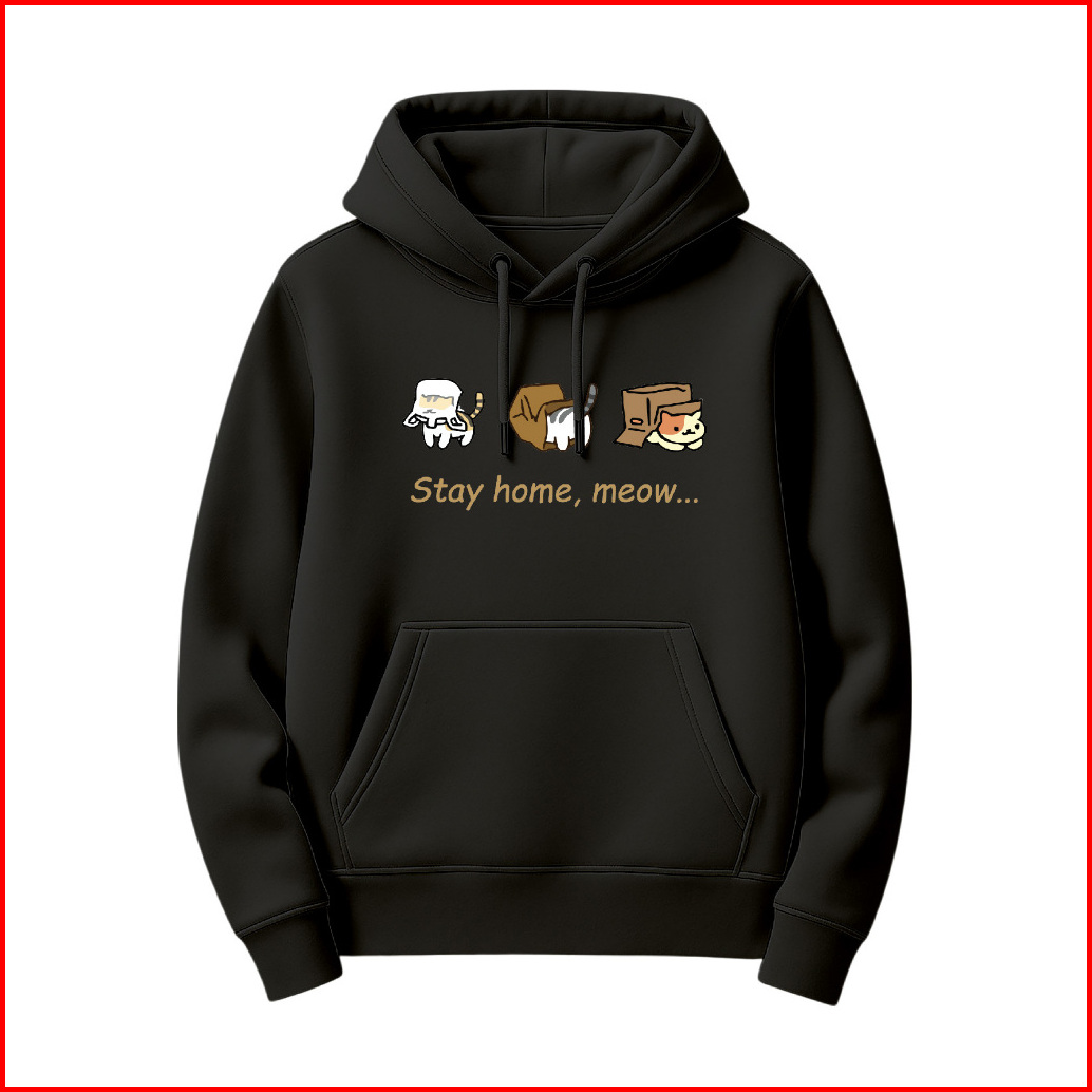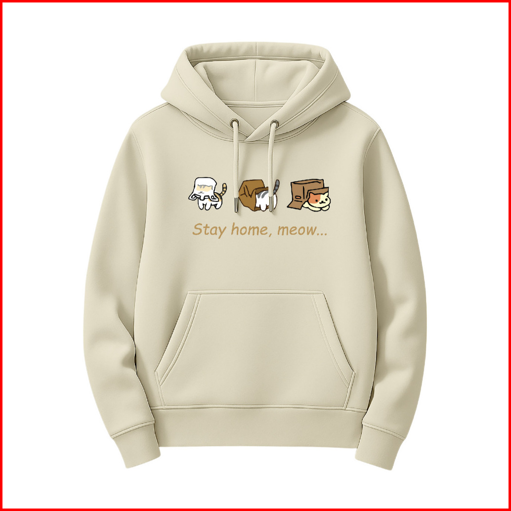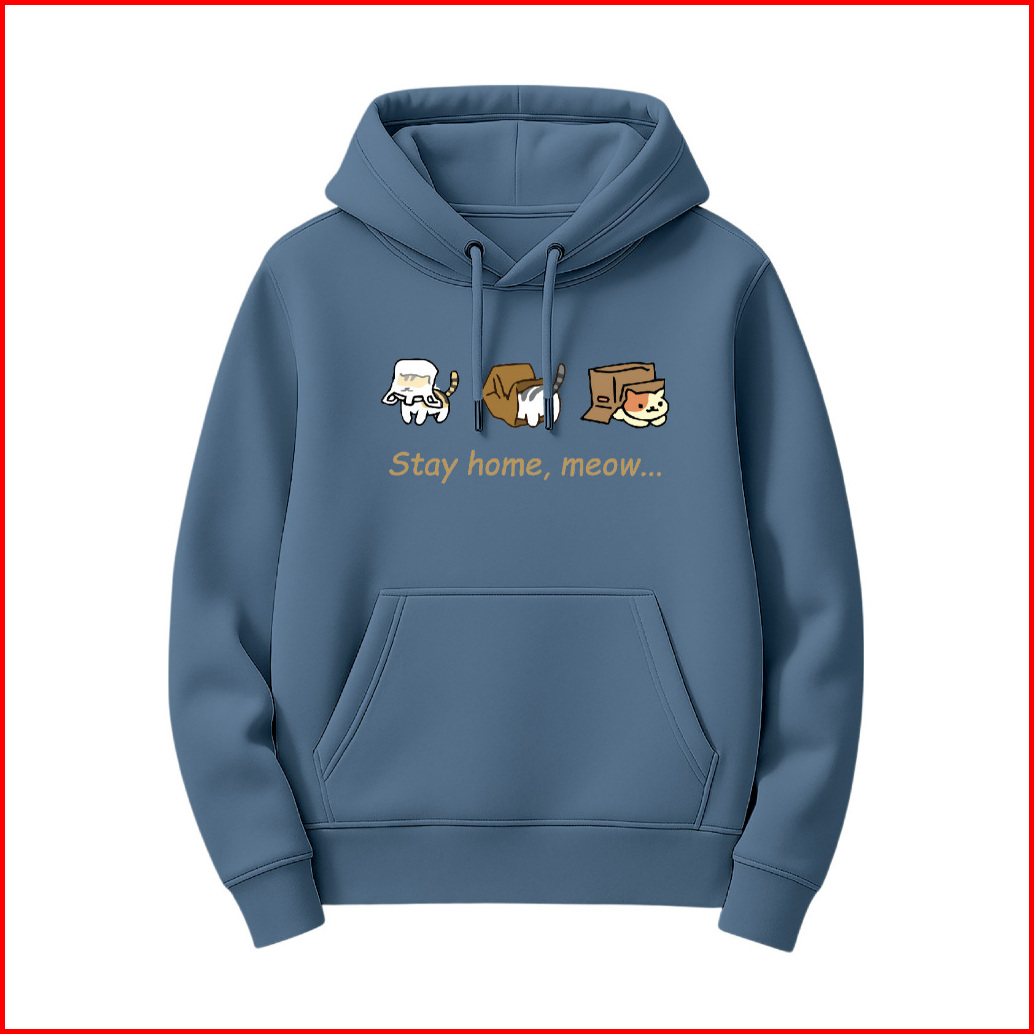 Jungji Sweaterpolos Hoodie Jumper Stay Home Meow Size M-xxl Pria Wanita