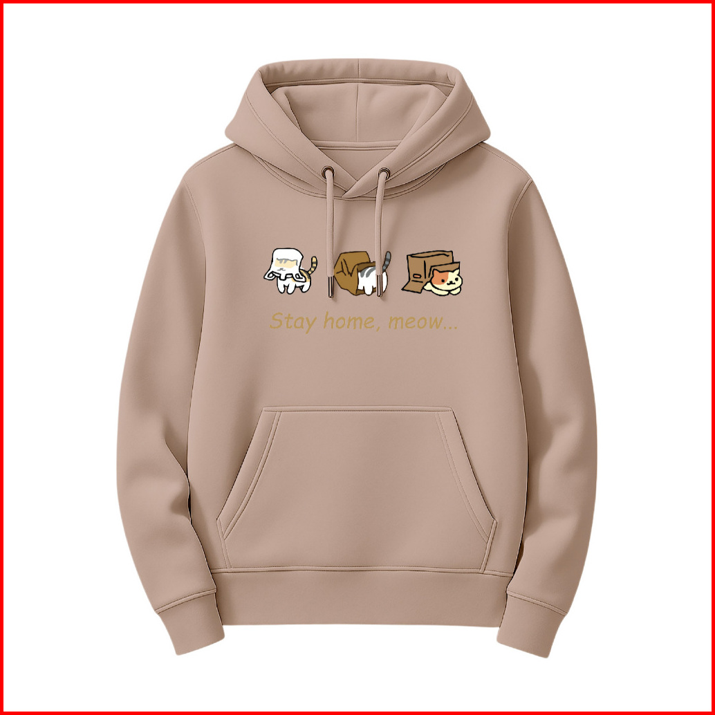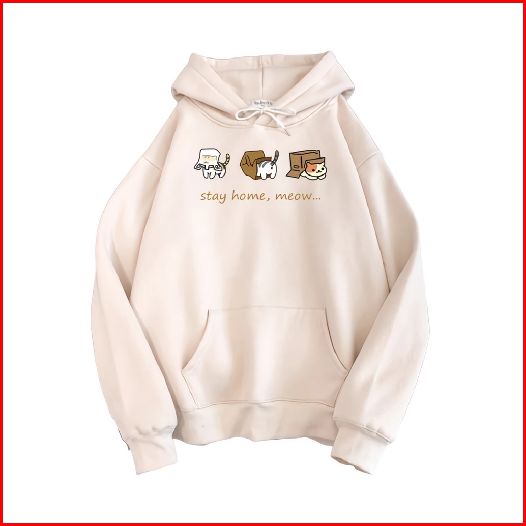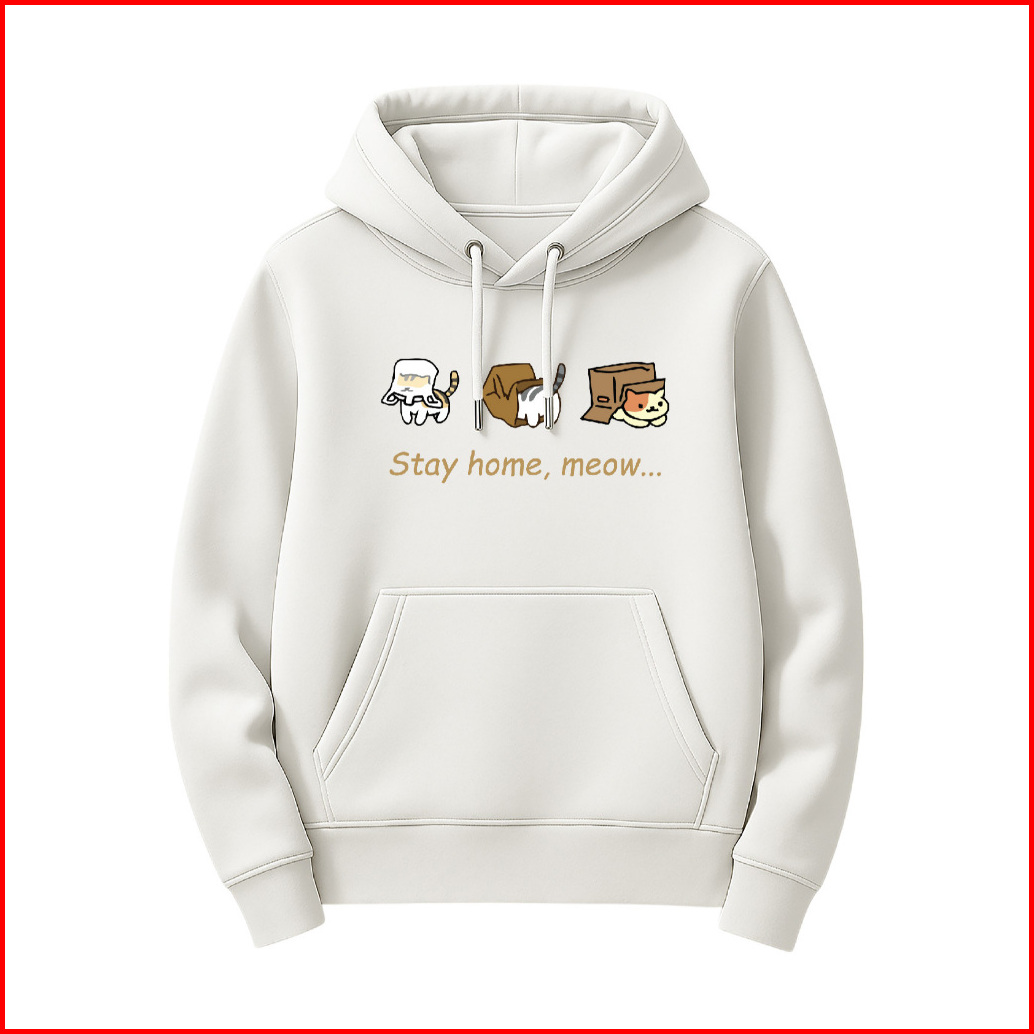 Jungji Sweaterpolos Hoodie Jumper Stay Home Meow Size M-xxl Pria Wanita
