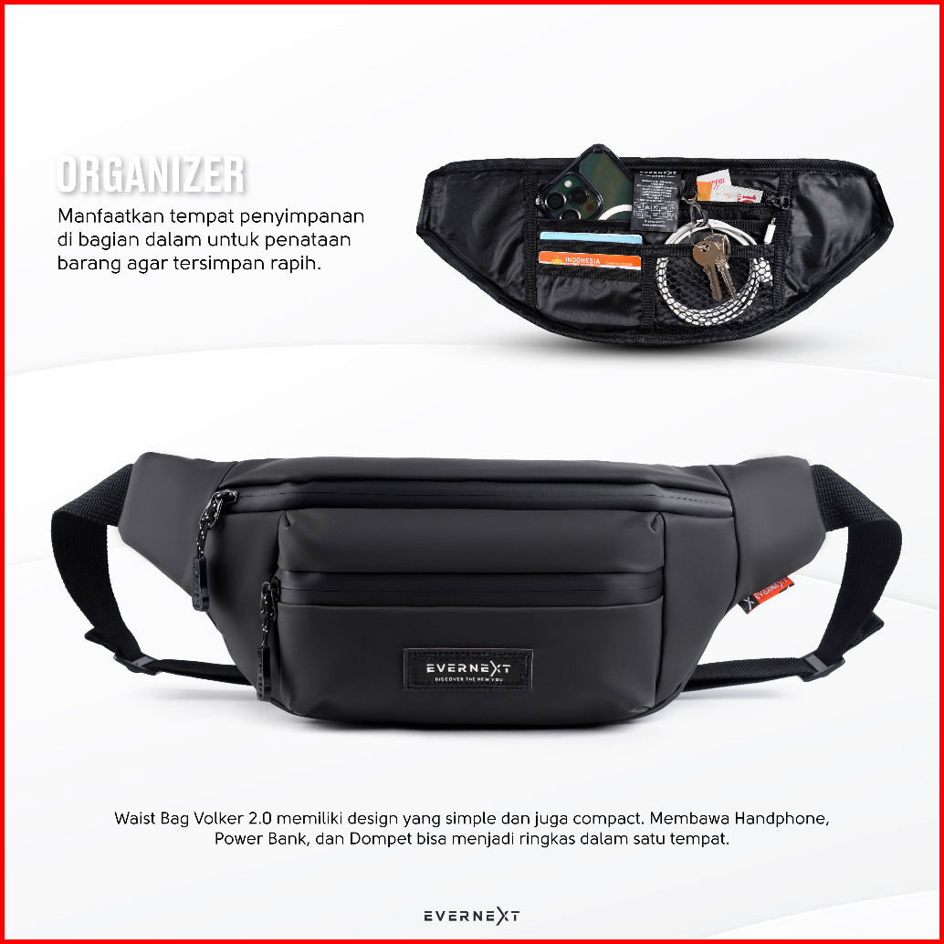 Evernext - Waist Bag Pria Anti Air Tas Selempang Pria Anti Bara Sling Bag Volker Pria Anti Air