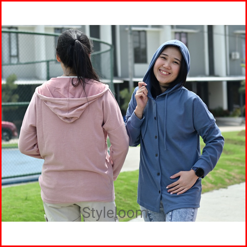 Hoodie Polos Kancing Saku Oversize Size M-xxl