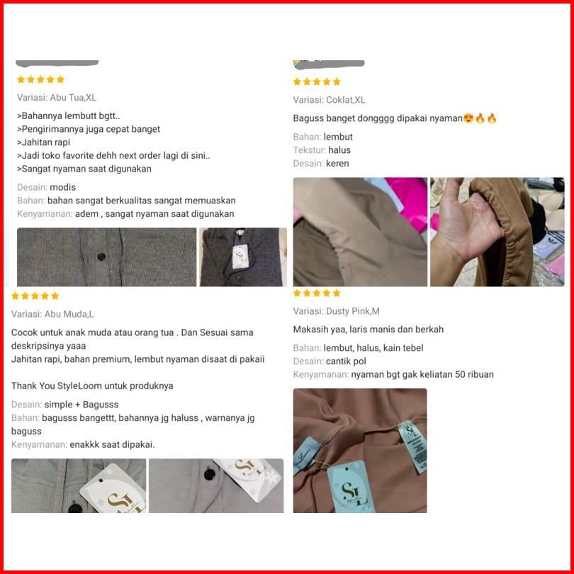 Hitam saku, Matcha saku, Sage salur saku, Wardah saku, Pink saku, Denim salur saku, Magenta saku, Burgundy saku, Tanah Saku, Pink salur saku, Coksu saku, Hitam salur saku, Putih salur saku, Burgundy salur saku, Taupe salur saku, Beige salur saku, Abu saku, Zaitun salur saku, Mocca saku, Ungu tua saku, Coklat salur saku, Lilac salur saku, Denim blue saku, Kopi saku