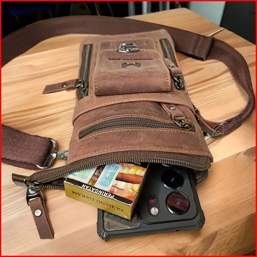 Tas Pinggang Hp Selempang Tas Kecil Pria 100 Kulit Sapi Asli - Vio Sling Bag