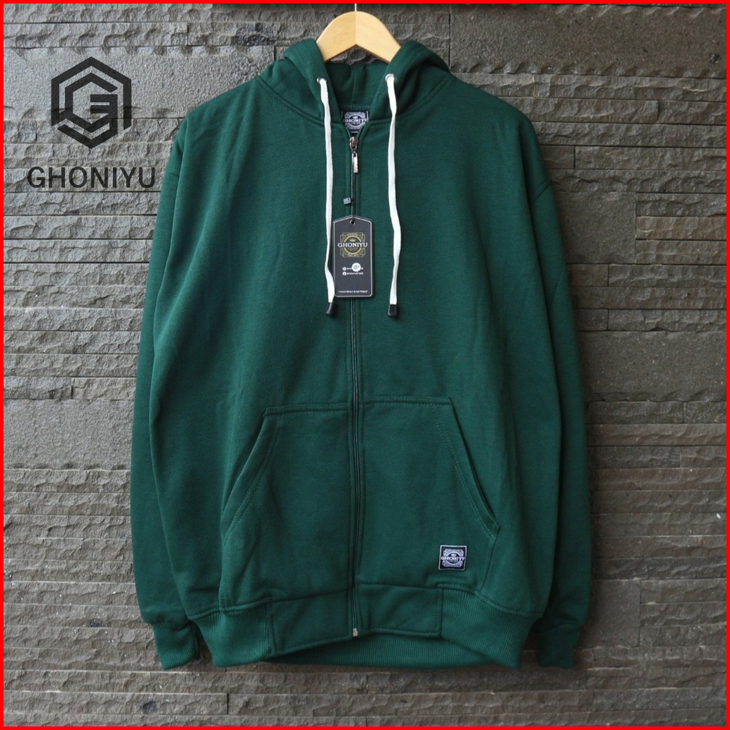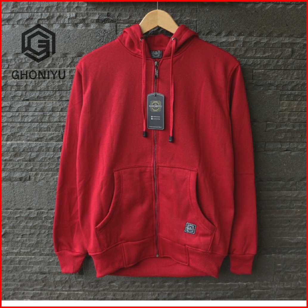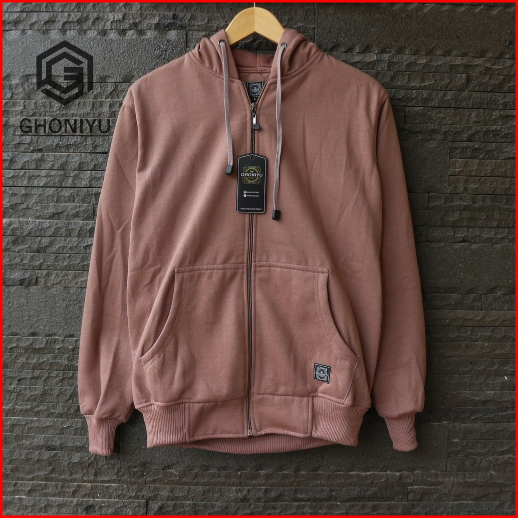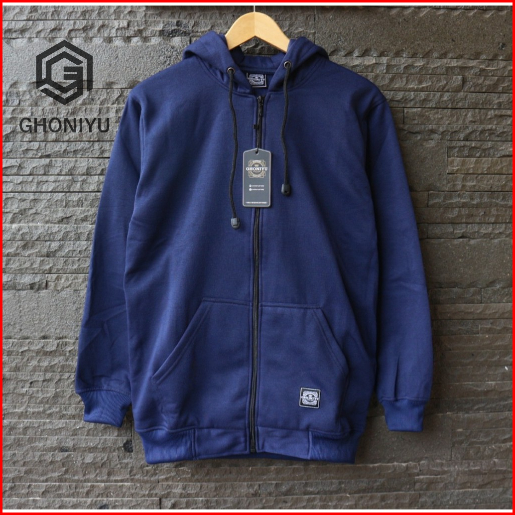 Jaket Zipper Hoodie Polos Kombinasi Original Ghoniyu Jumbo