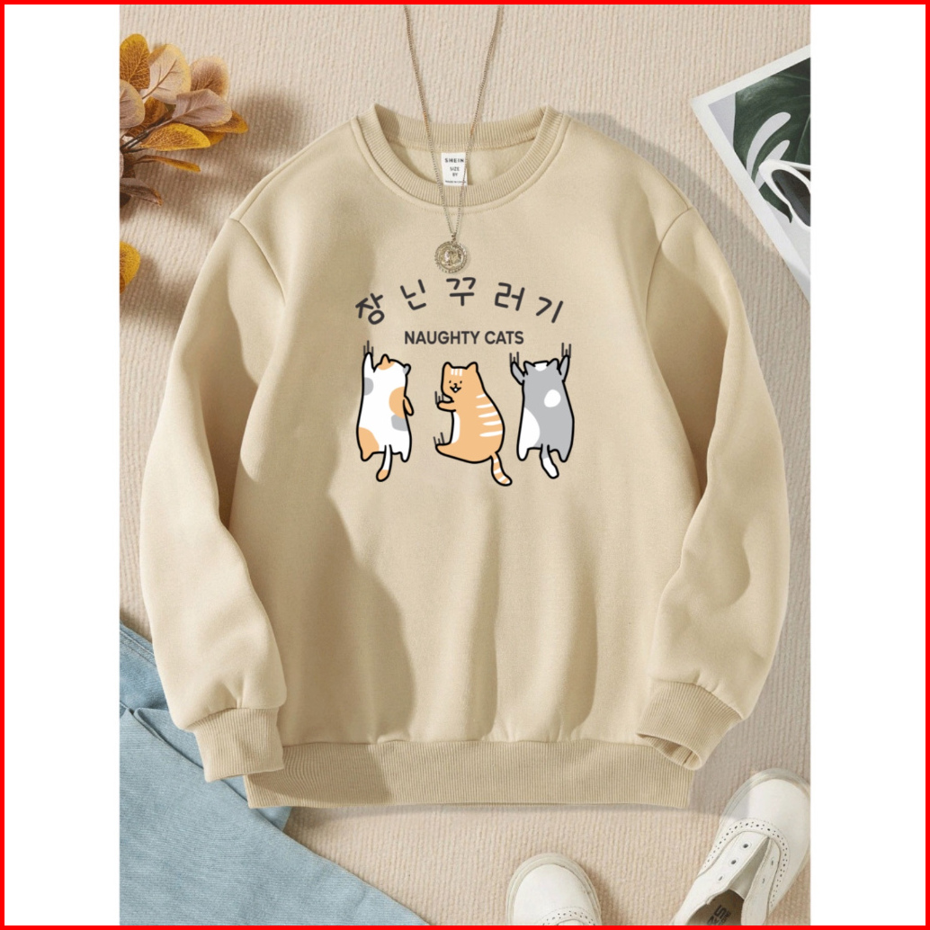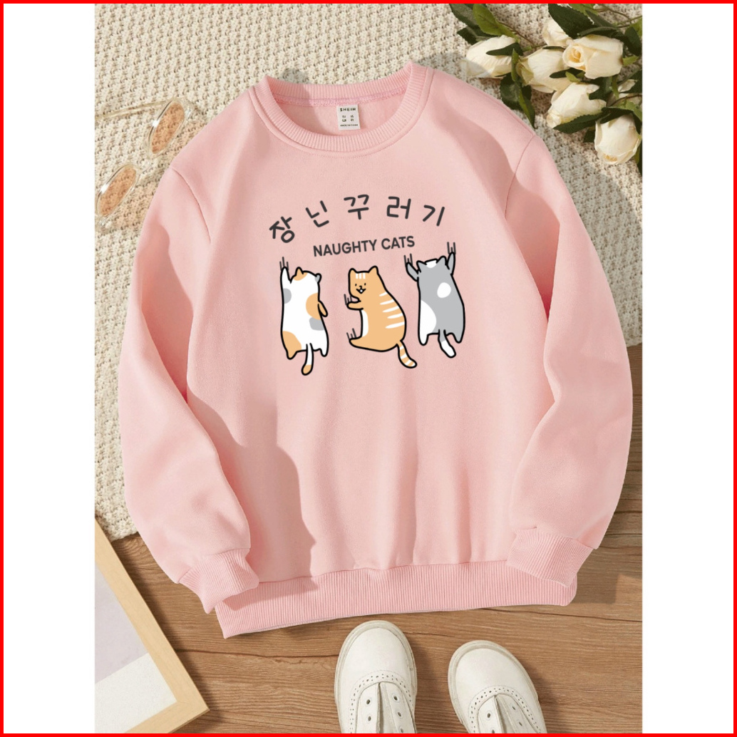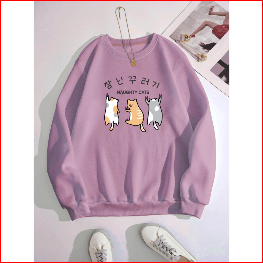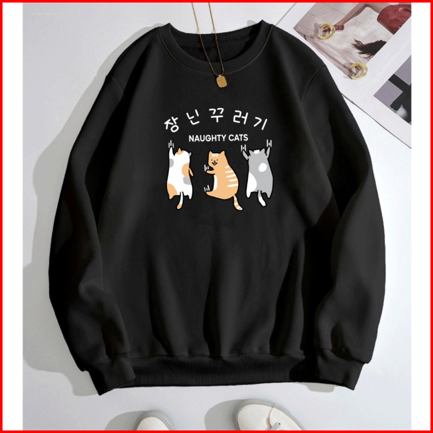 Mighty Cats Sweater Wanita Oneck Sweatshirt Cute Korean