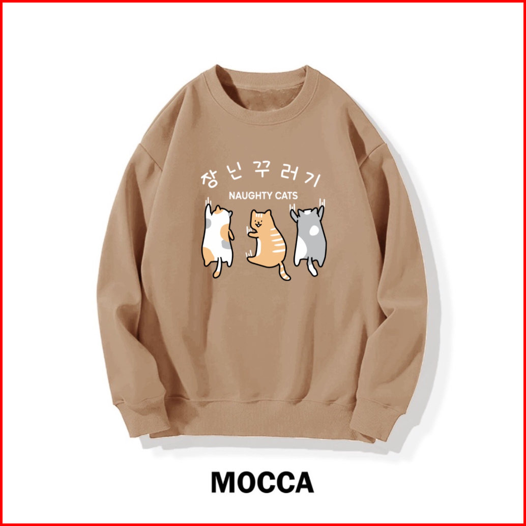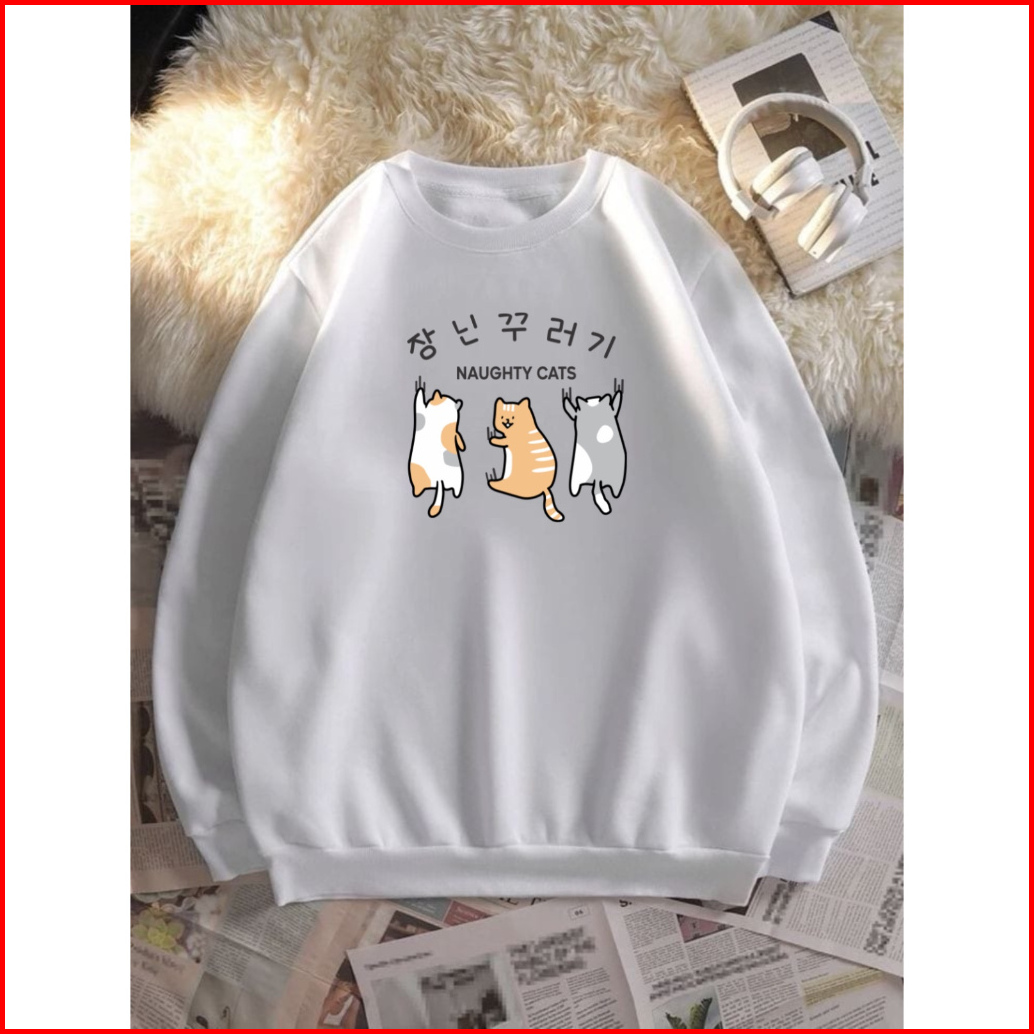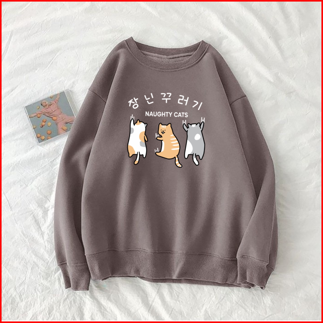 Mighty Cats Sweater Wanita Oneck Sweatshirt Cute Korean