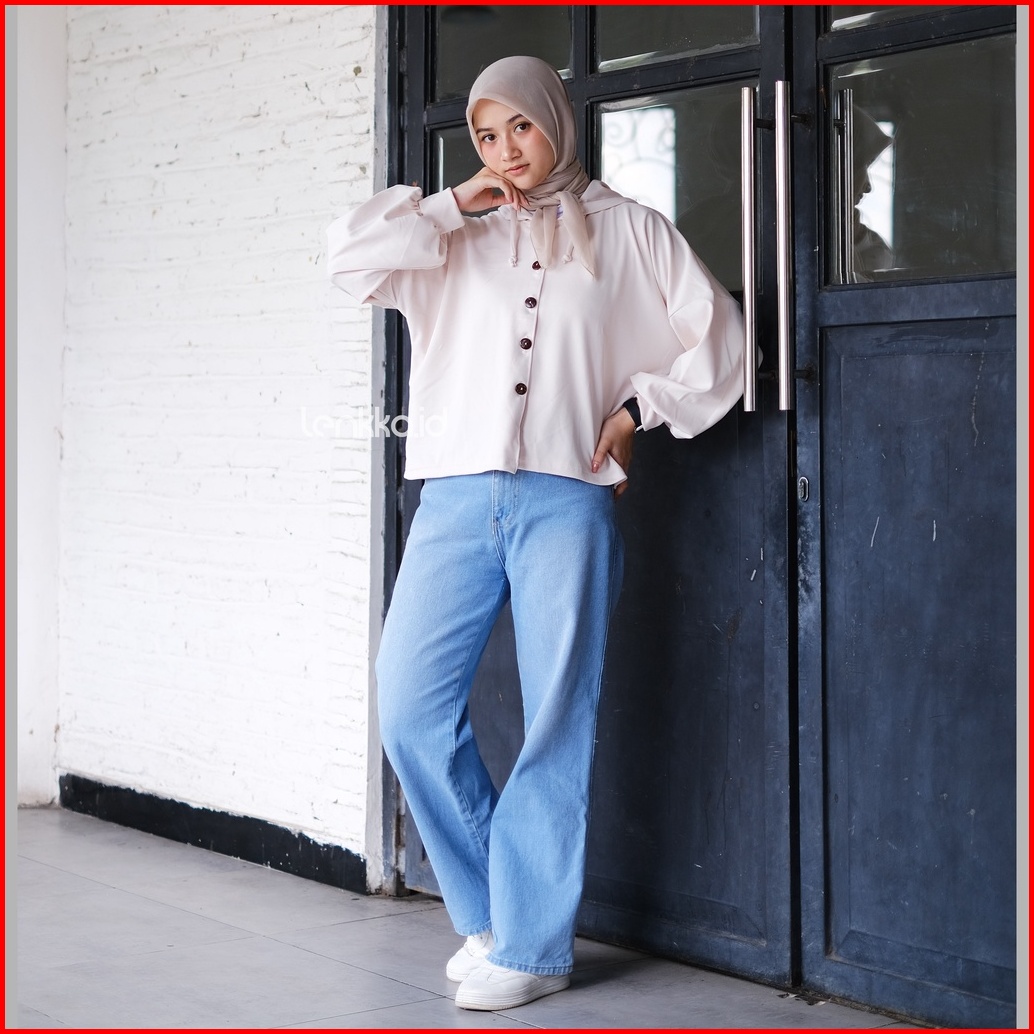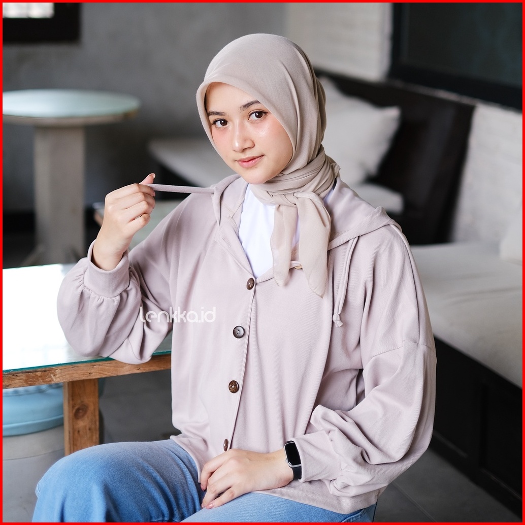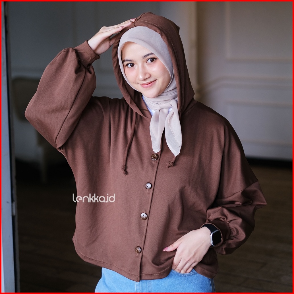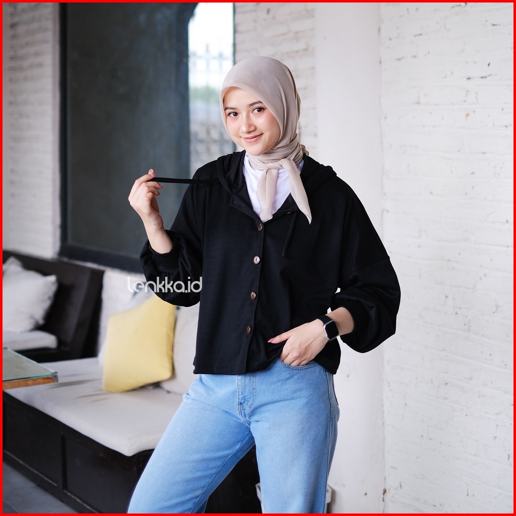 Ghina Hoodie Crop Oversize Hoodie Wafle Knitt Wanita Terbaru