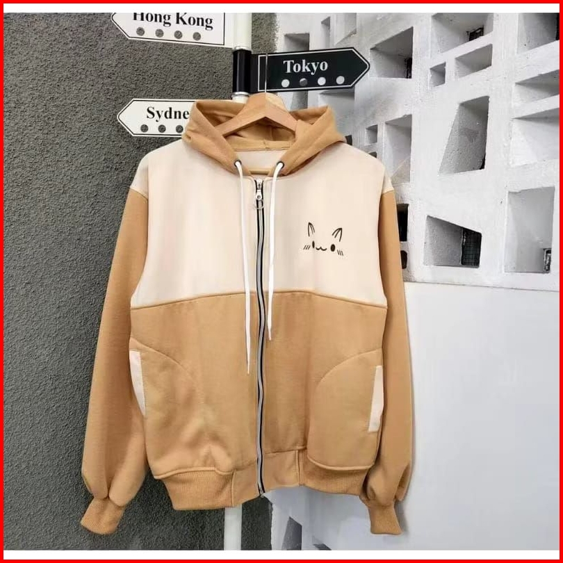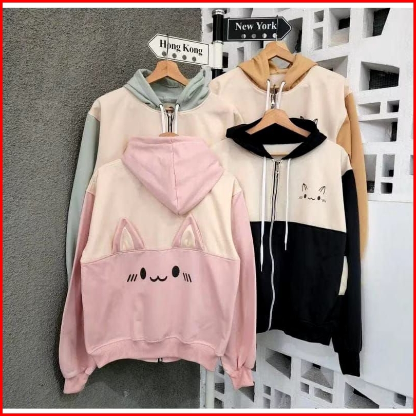 Sweater Hoodie Rabbit Zipper Cat Depan Belakang Atasan Jumper Hudi Korean Style