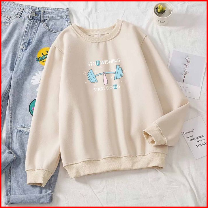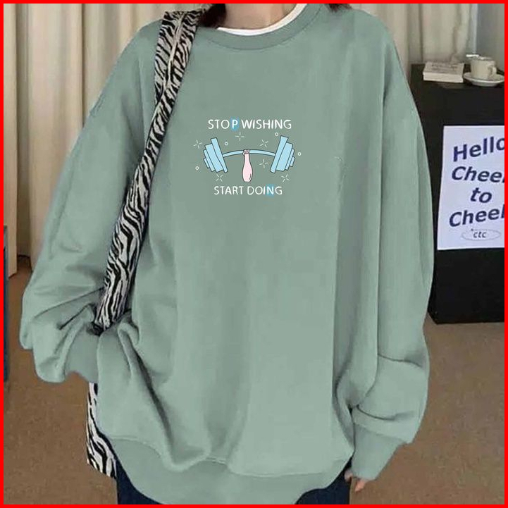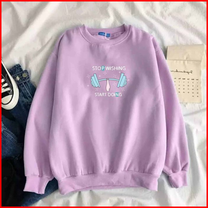 Stop Wishing Sweater Wanita Korean Style M - Xxl Fleece Unisex