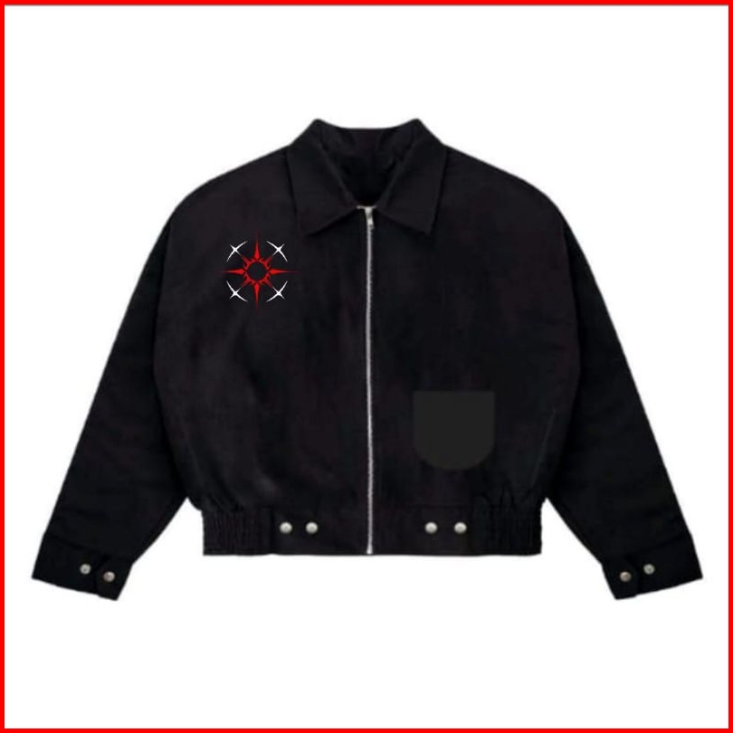 Work Jacket Crop Black Star - Jaket Crop Pria Wanita Unisex - Crop Jacket Terbaru Size M L Xl Xxl