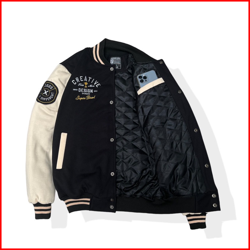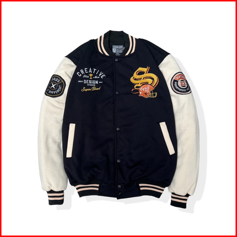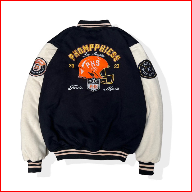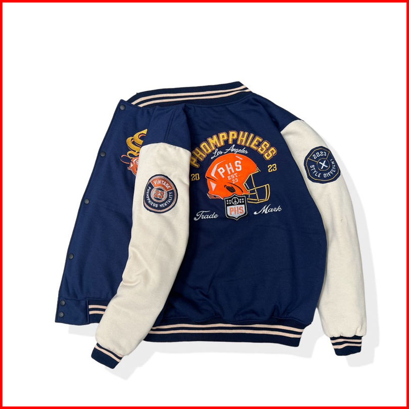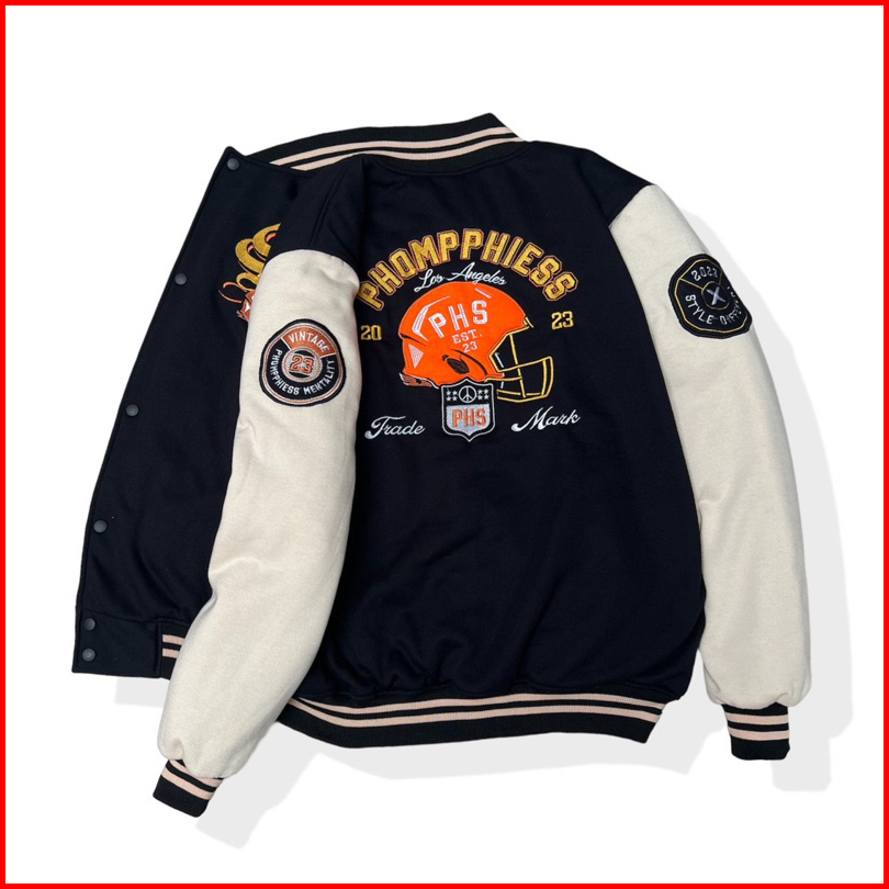 Phompphiess Jaket Varsity Full Bordir Jacket Baseball Pria Wanita