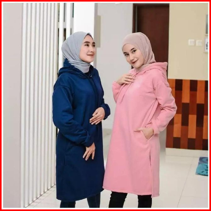 Rahmi Long Sweater Hoodie Ii Jumper Hoodie Wanita Hijaber Bahan Fleece