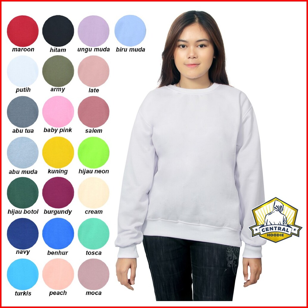 Central Hoodie Sweater Basic Jaket Unisex Pria Wanita Polos Fleece Crewneck