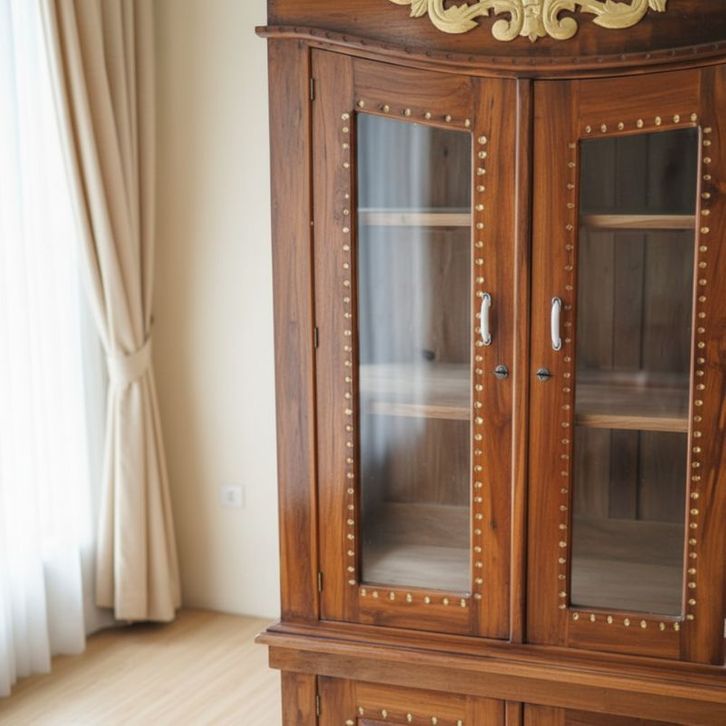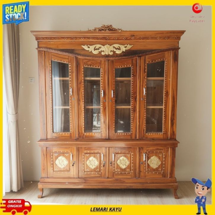 [Star] LEMARI HIASAN RUANG TAMU 4 PINTU LEMARI HIAS RUANG TAMU KACA KAYU LEMARI HIAS KAYU JATI UKIR