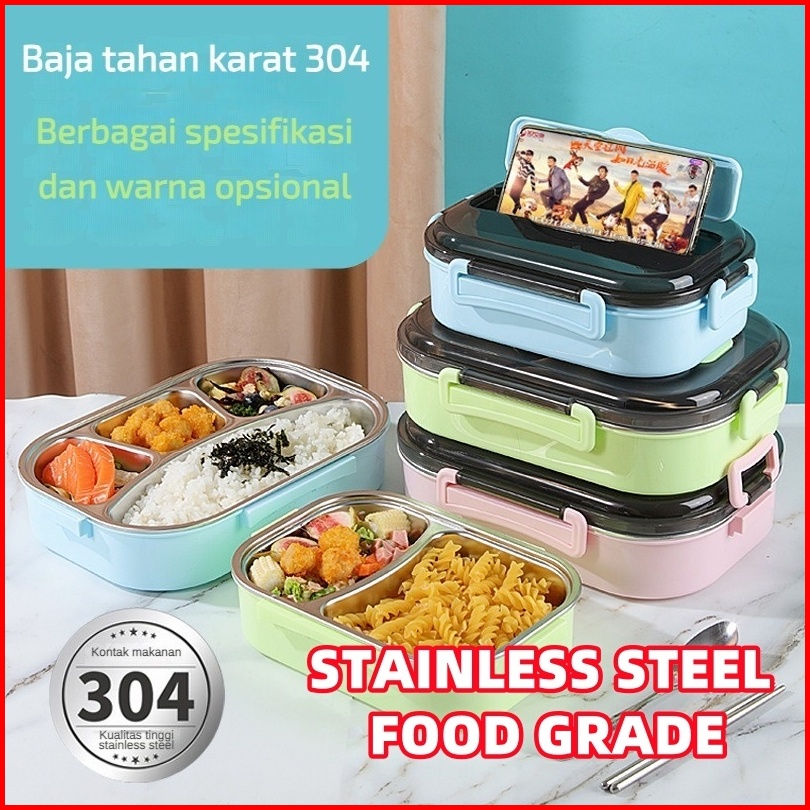 Kotak Makan Stainless 3 4 Sekat Baja Tahan Kotak Bekal Stainless Tempat Makan Stainless 1000ml