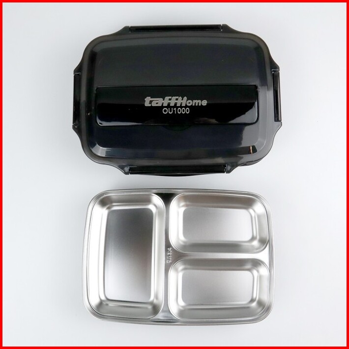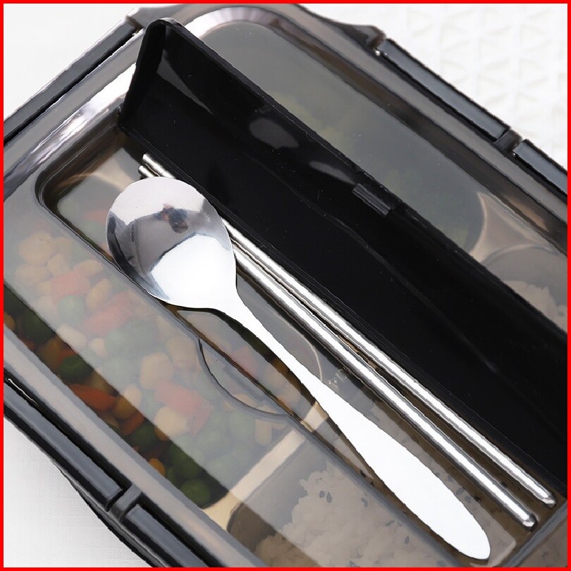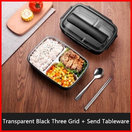 Kotak Makan Bento Stainless Steel Lunchbox 3 Grids Hitam