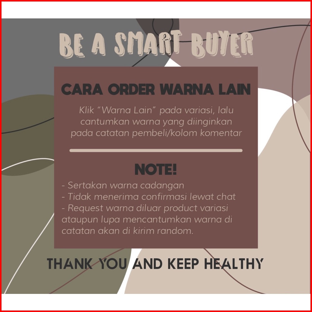 Hitam, Putih, MOCCA, ABU MUDA, Abu Tua, Lilac, NAVY, MAROON, Beige, ARMY, LATTE, HIJAU BOTOL, Dusty Pink, BABY PINK, BURGUNDY, STEEL BLUE, SAGE GREEN, Olive, PEACH, Mint, GREEN LIME, Kuning, SALMON