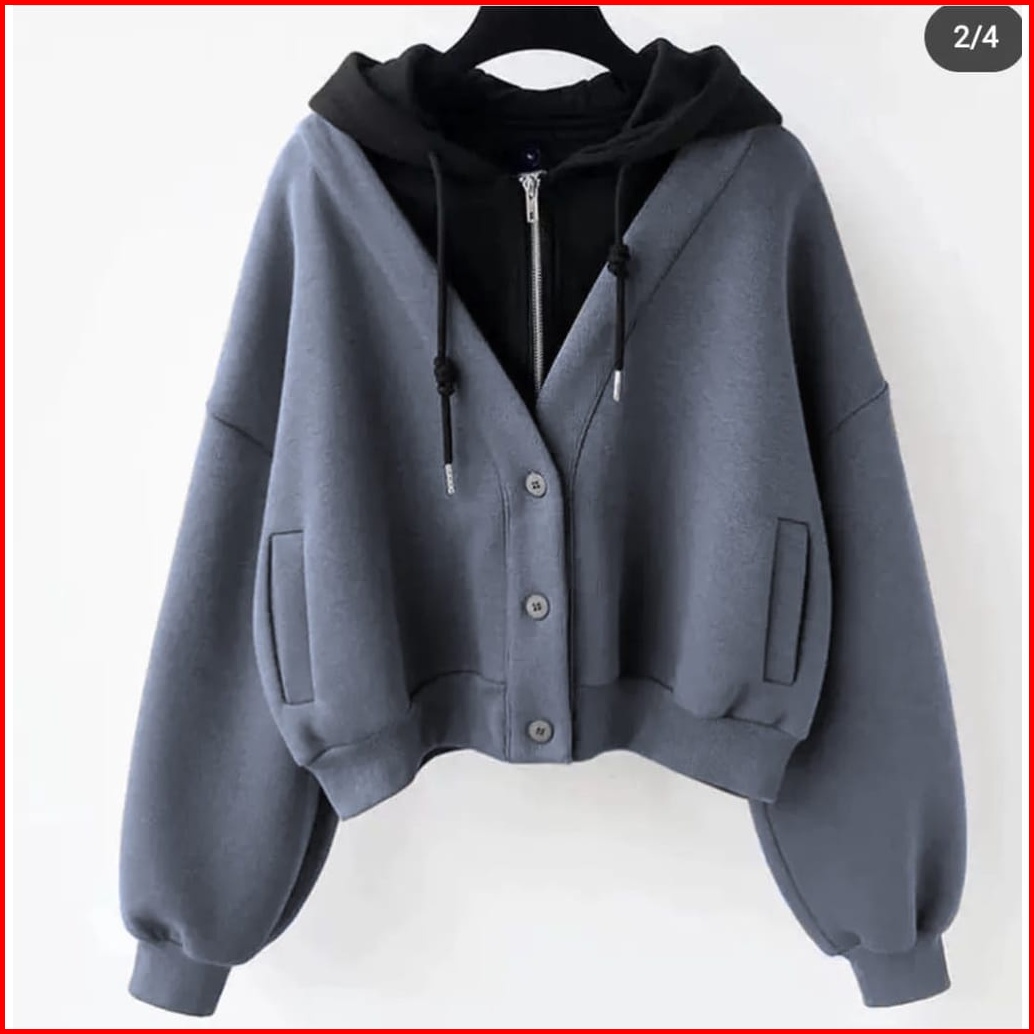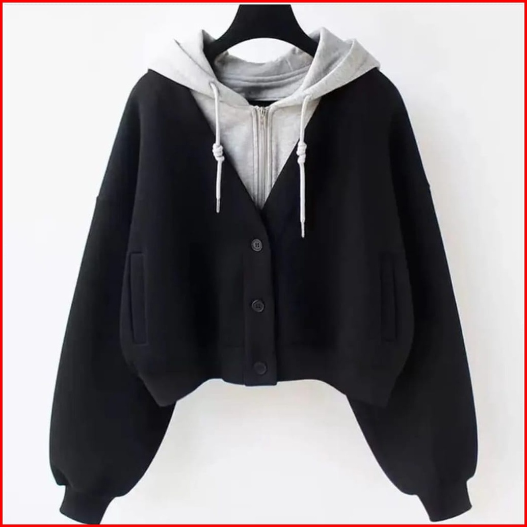 Double Cardigan Sweater Hoodie - Sweater Jaket Hoodie Wanita Korean Style