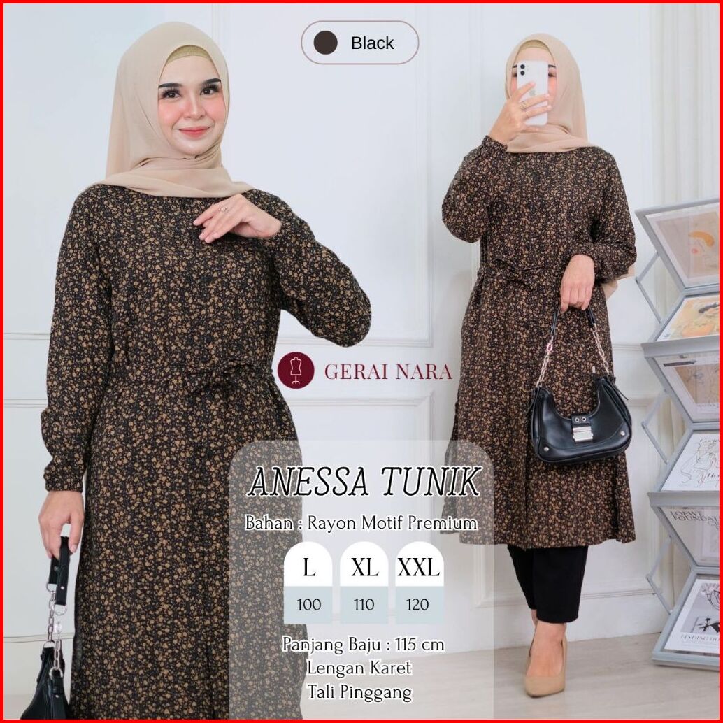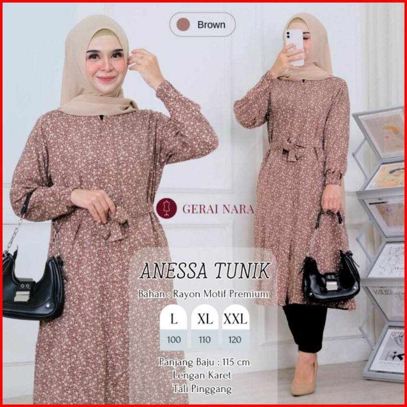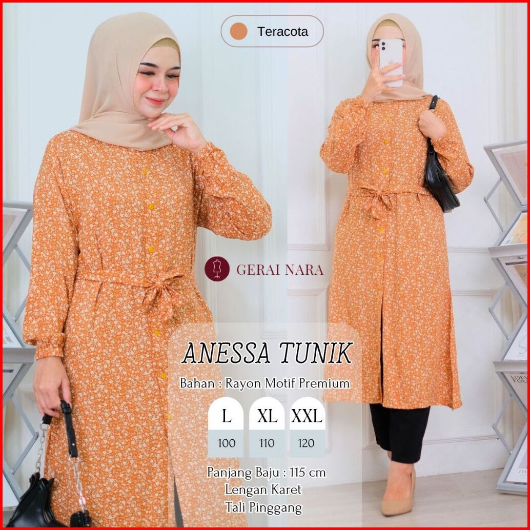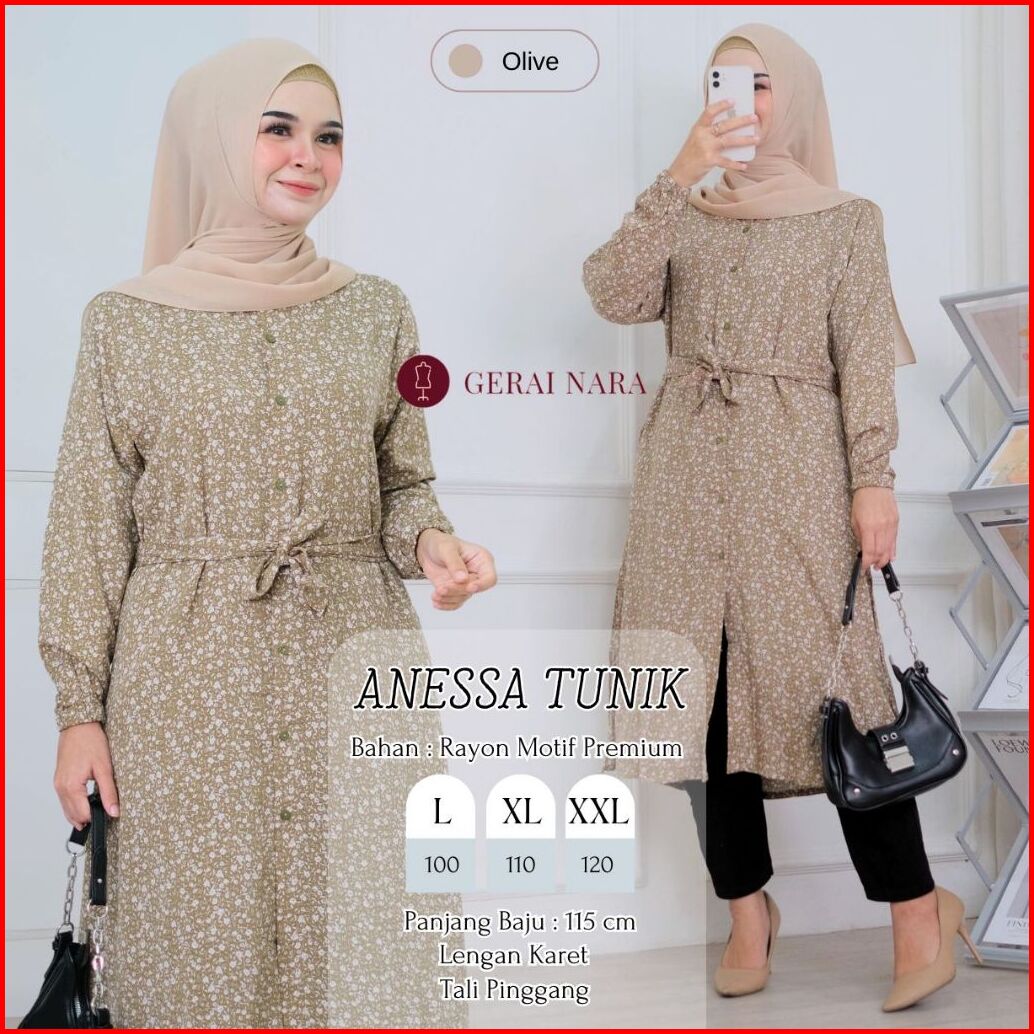 Baju Anessa Tunik Motif Bunga Floral Long Tunik Rayon Premium