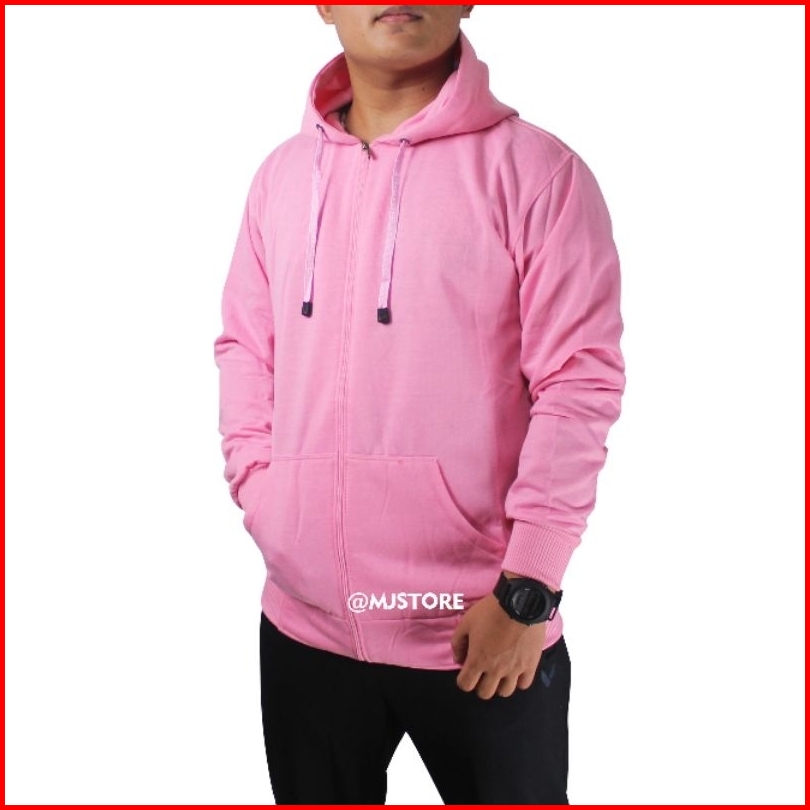 Jaket Hoodie Pria Zipper Polos Dewasa