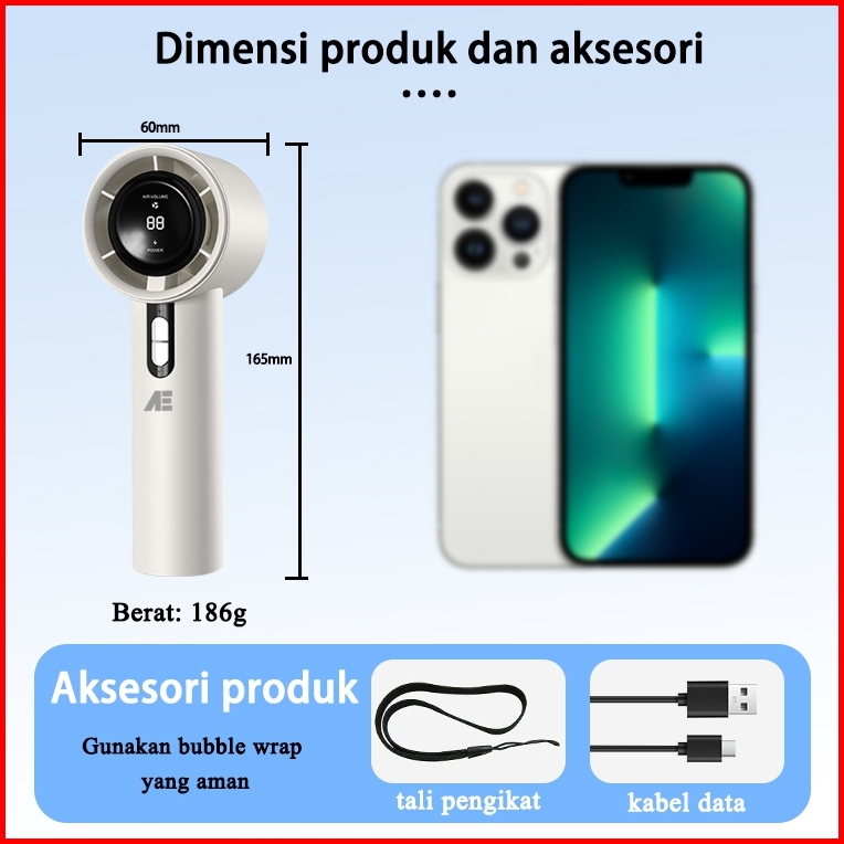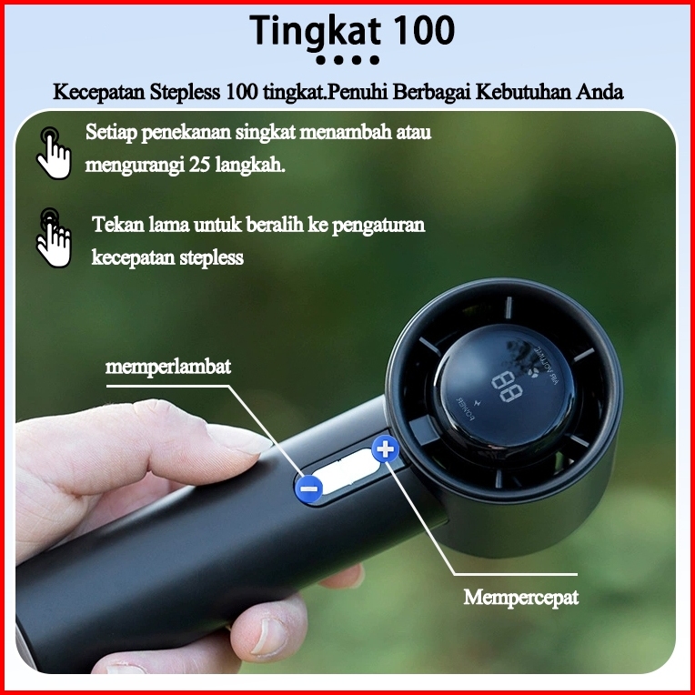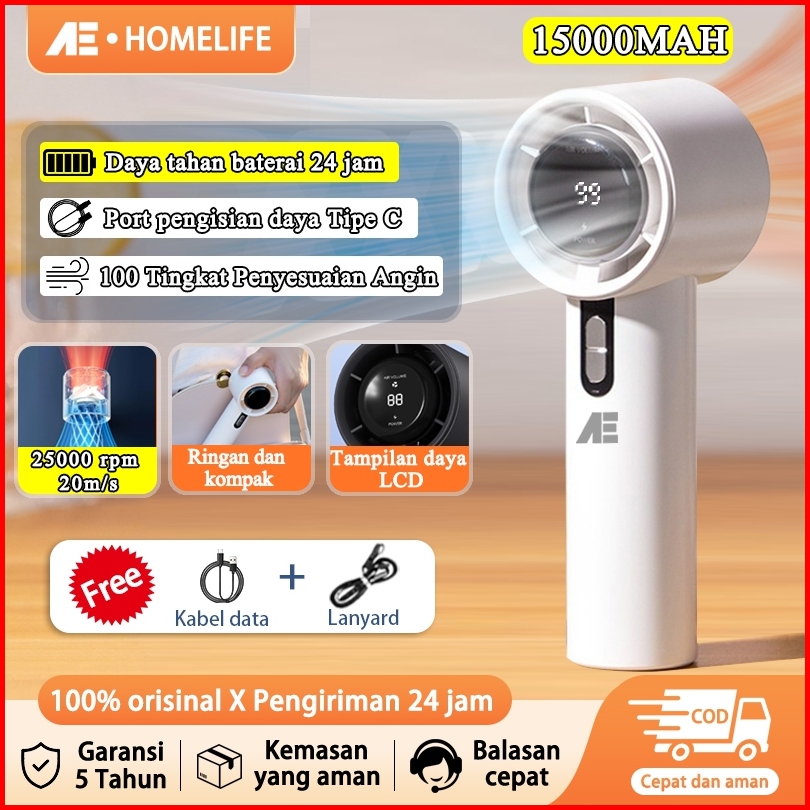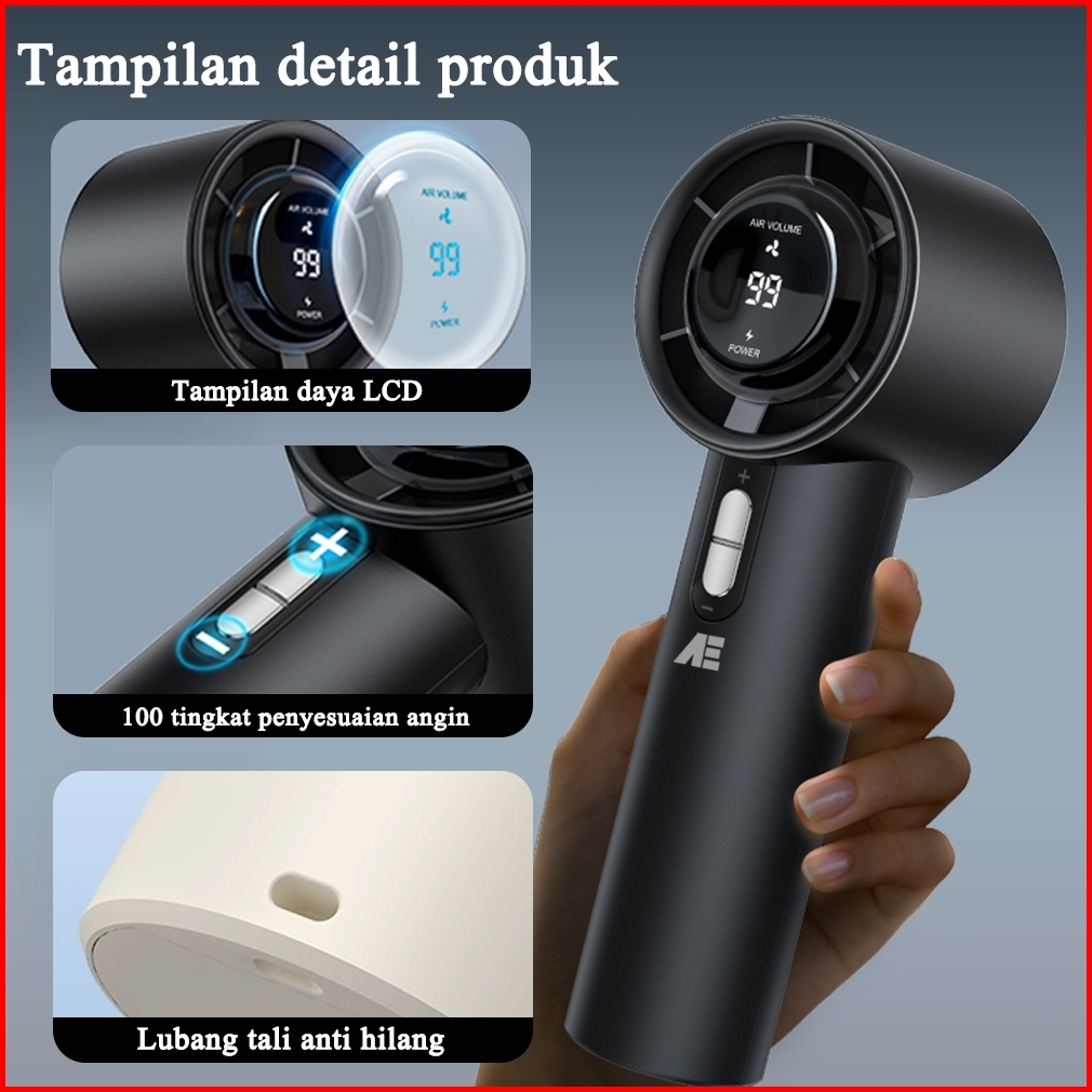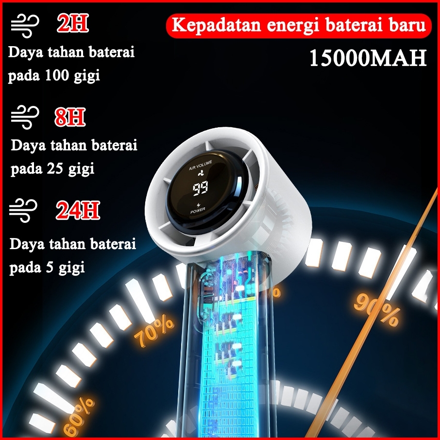 Ae Kipas Angin Portable15000mah 100 Gear Strong Wind Kipas Angin Kecil Turbo Adjustable Wind Speed Digital Display