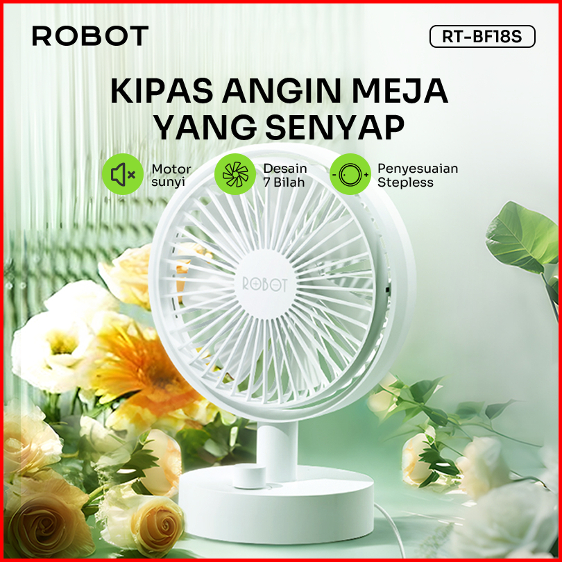 Robot Kipas Angin Meja Mini Non Portabel Usb Mini Fan Mode Senyap Rt-bf18s Original - Garansi 1 Tahun