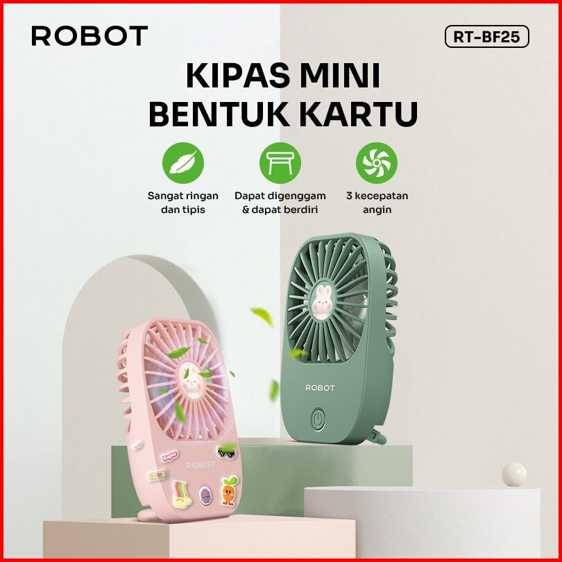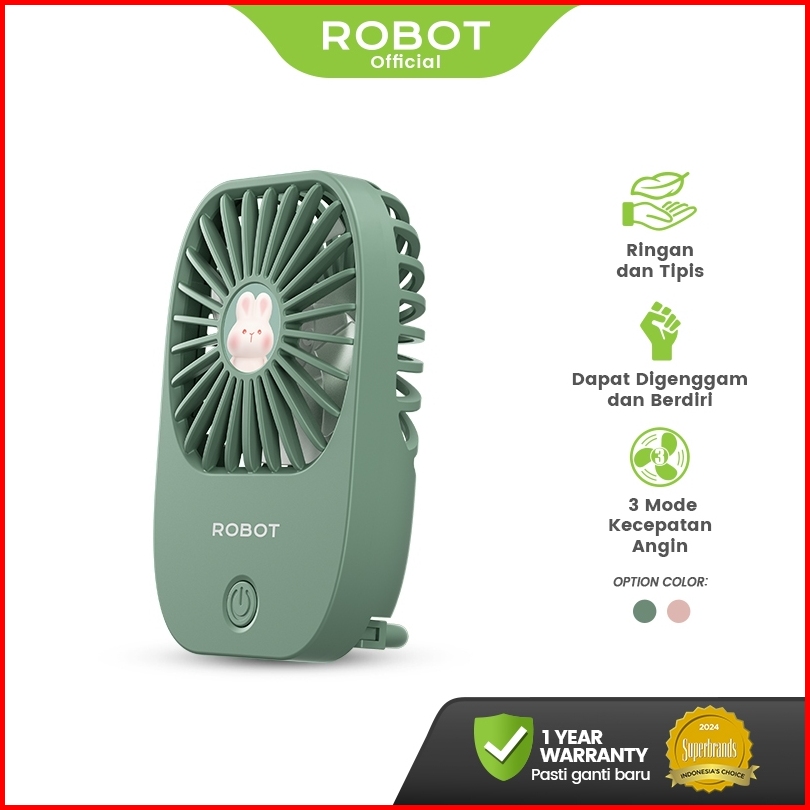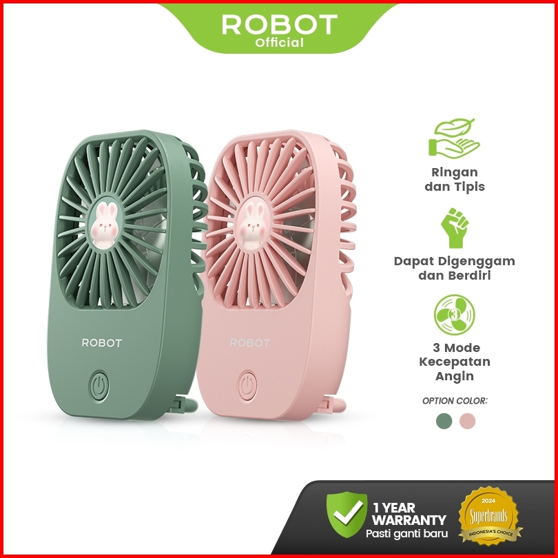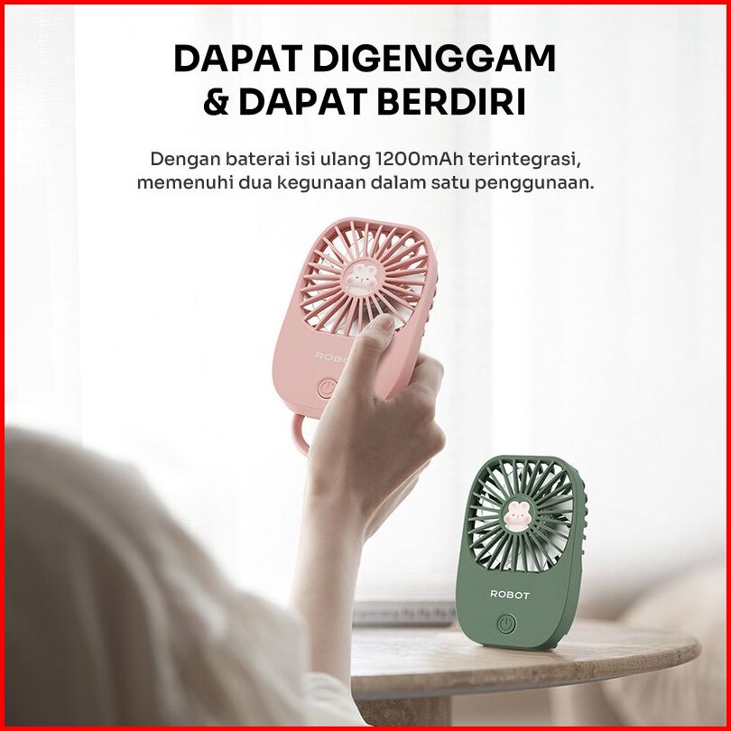 Robot Kipas Mini Karakter Kelinci Portabel 1200mah Kipas Angin Lucu Genggam Kipas Berdiri Free Stiker Rt-bf25 Original -
