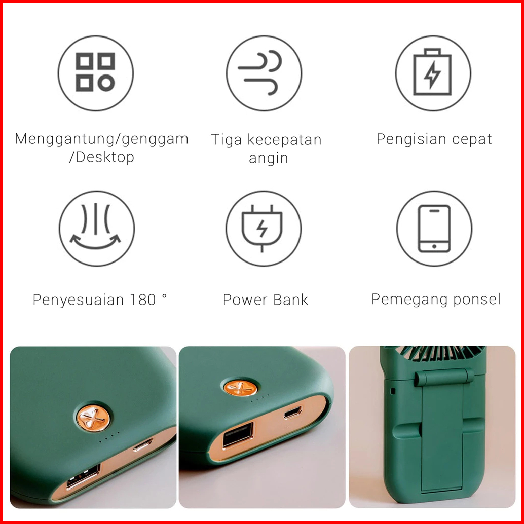 Yoogoo Kipas Angin Portable Mini Kipas 3 In 1 Kipas Angin Mini Powerbank Kipas