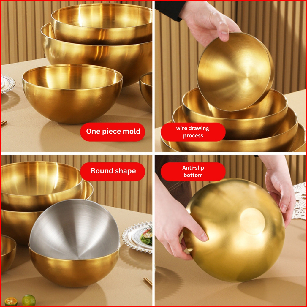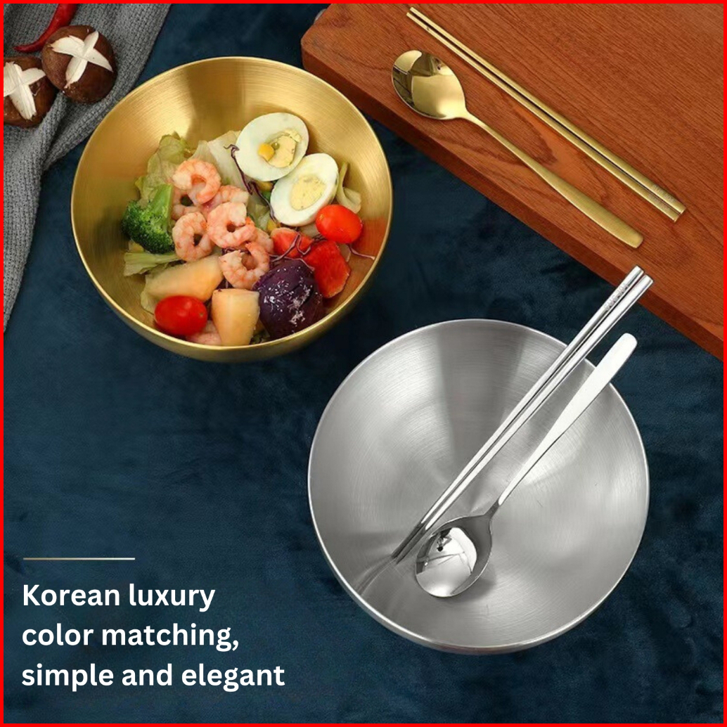 Sunland Mangkok Korea Stainless Steel Tebal Anti Panas Wadah Makanan Mie Cup Soup Bowl