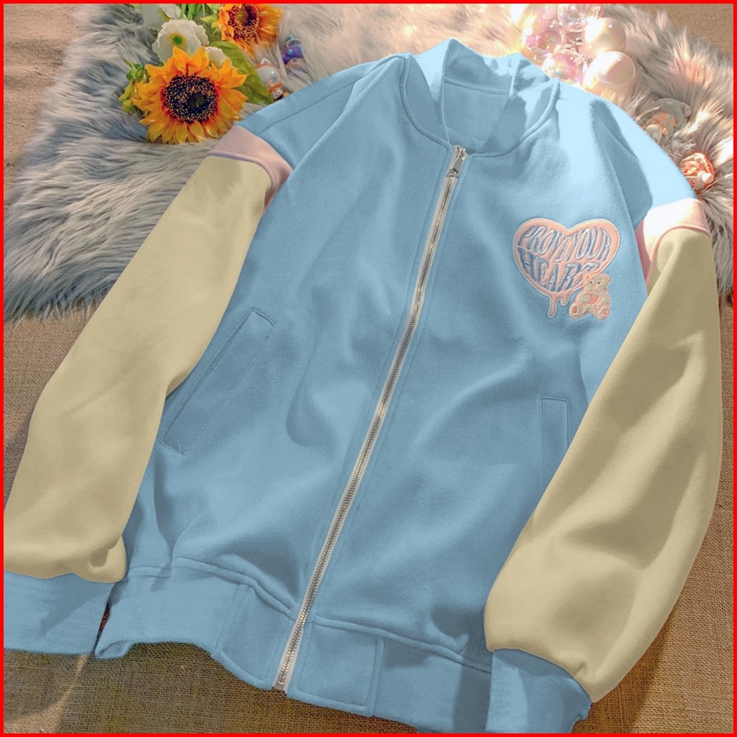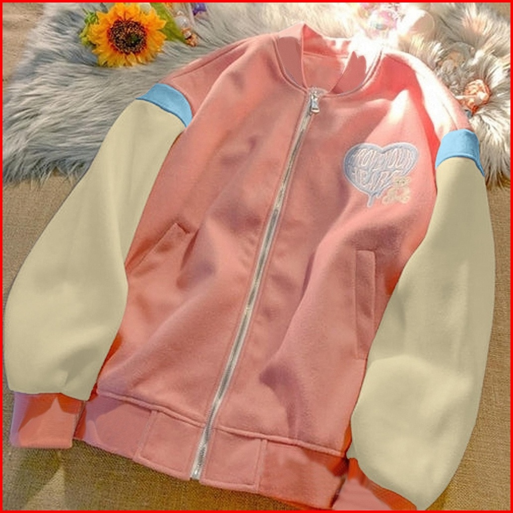 Jacket Varsity Prove Your Heart Korean Style Bomber Baseball Pakaian Pria Dan Wanita Bahan Fleece Allsize