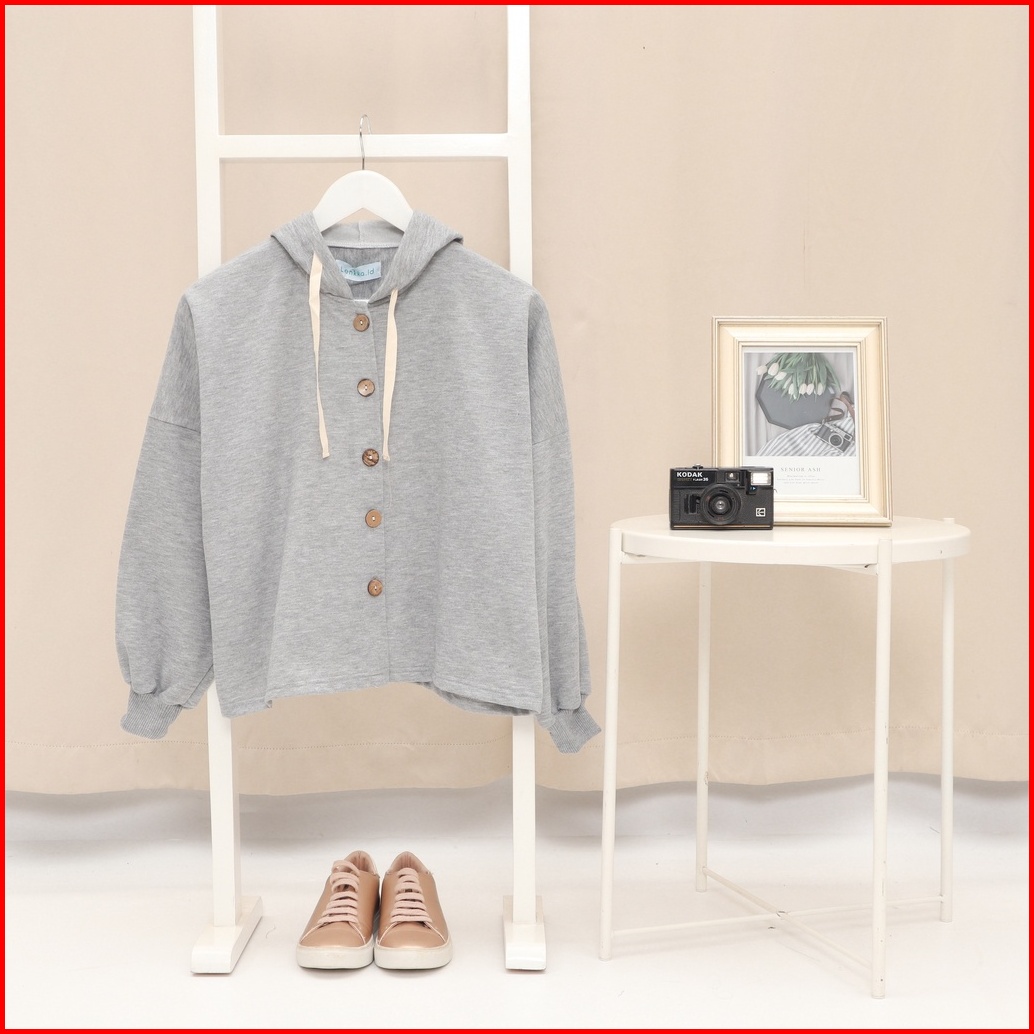 Hoodie Button Sweater Wanita Bahan Fleece Tebal Fashion Kasual Korea Musim Semi