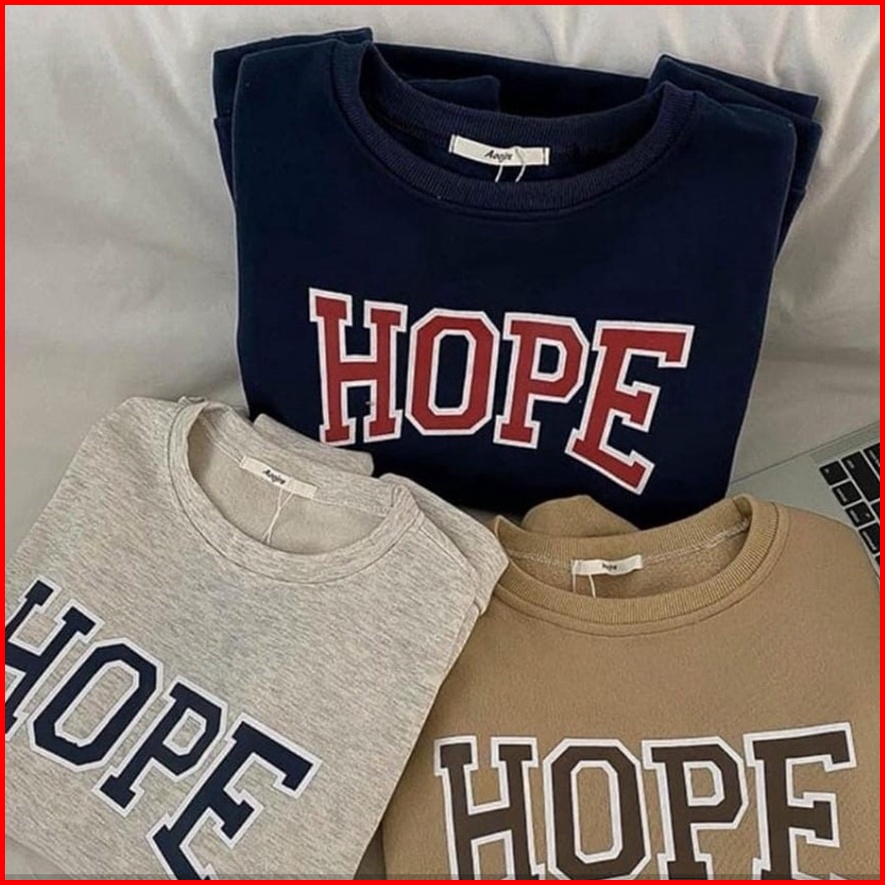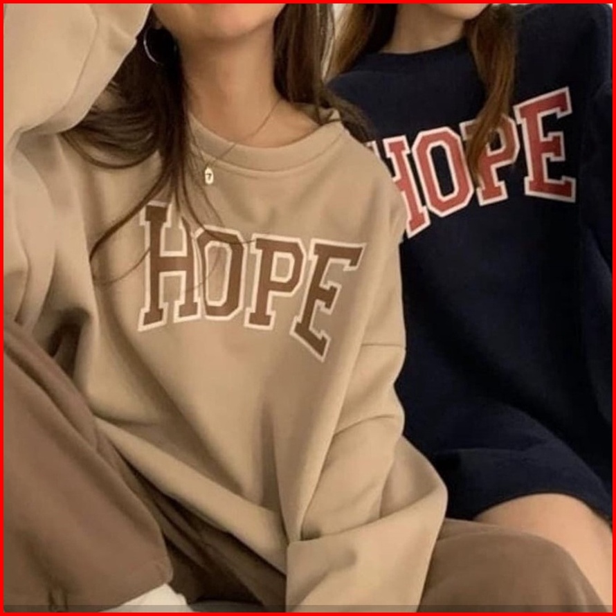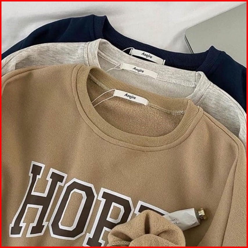 Sweater Crewneck Oversize Hope Korean Style Sweatshirt Oblong Terbaru Bahan Fleece Big Size L - Xl - Xxl
