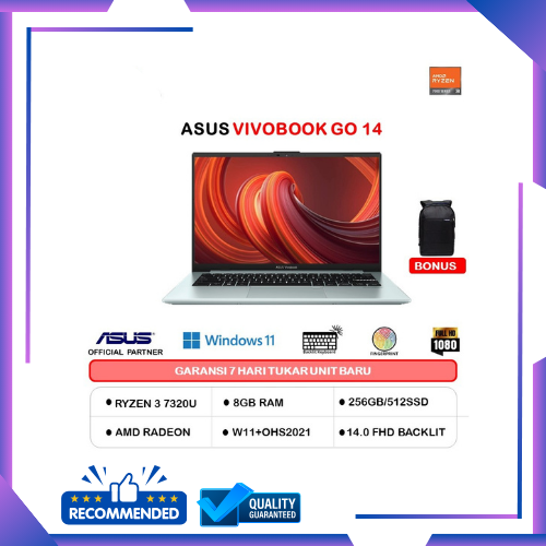 LAPTOP ASUS VIVOBOOK GO 14 E1404FA RYZEN 3 7320 8GB 256GB RADEON 610M W11+OHS 14.0FHD GRN GRY -FHD322
