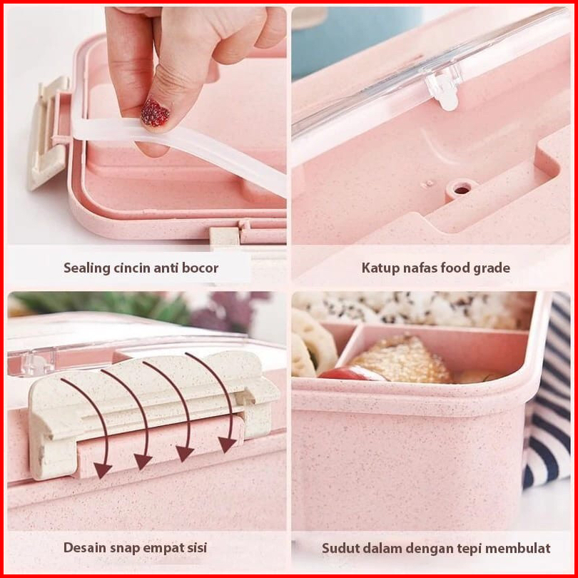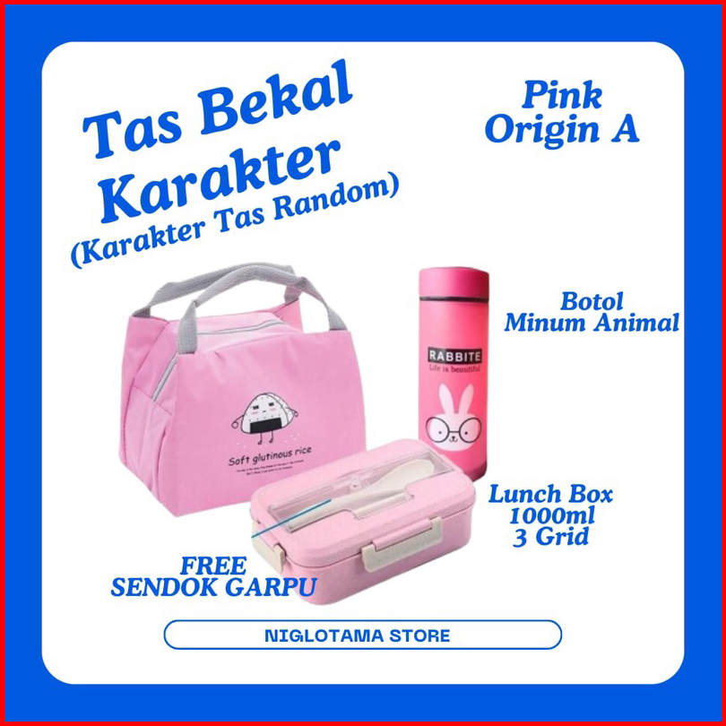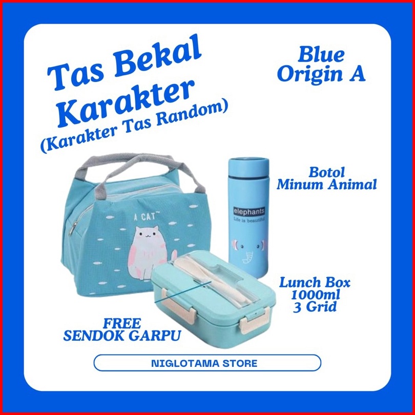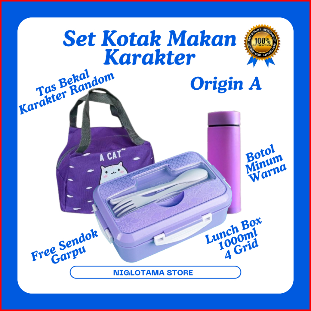 Lunch Box Set Kotak Bekal Makan Anak Anti Tumpah 4 Grid 1000ml Free Sendok Garpu Tas Bekal Makan Karakter Lucu Untuk Ana