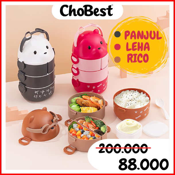 3 Tingkat Chobest Si Panjul Lunch Box Beruang Tempat Makan Big Besar Kotak Makan Anti Tumpah Cb35 Kotak Bekal Makanan An