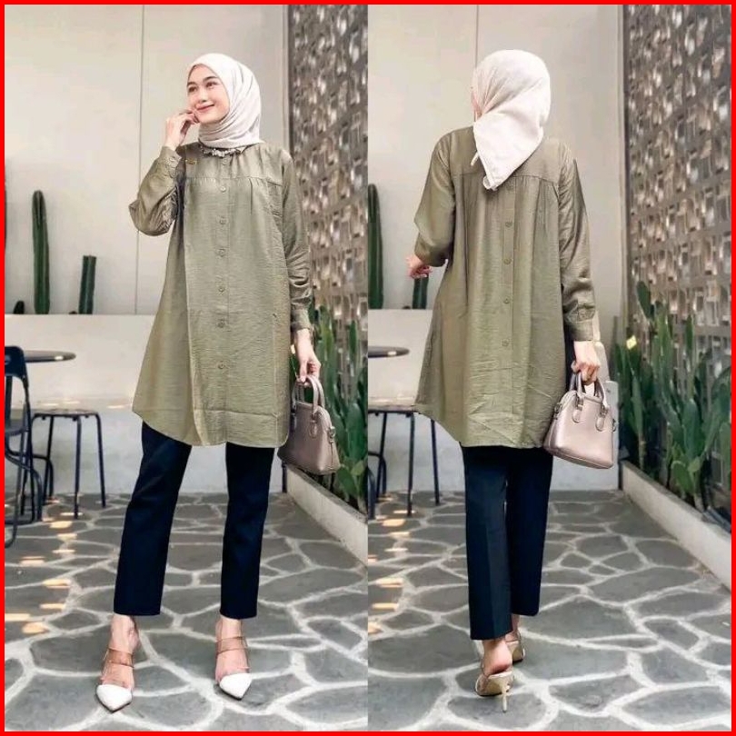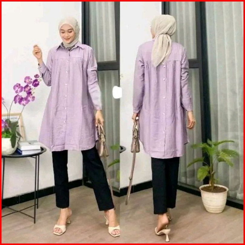 Zahra Tunik Polo Linen Lingkar Dada 110cm Dan 125cm Dengan Variasi Kancing Belakang