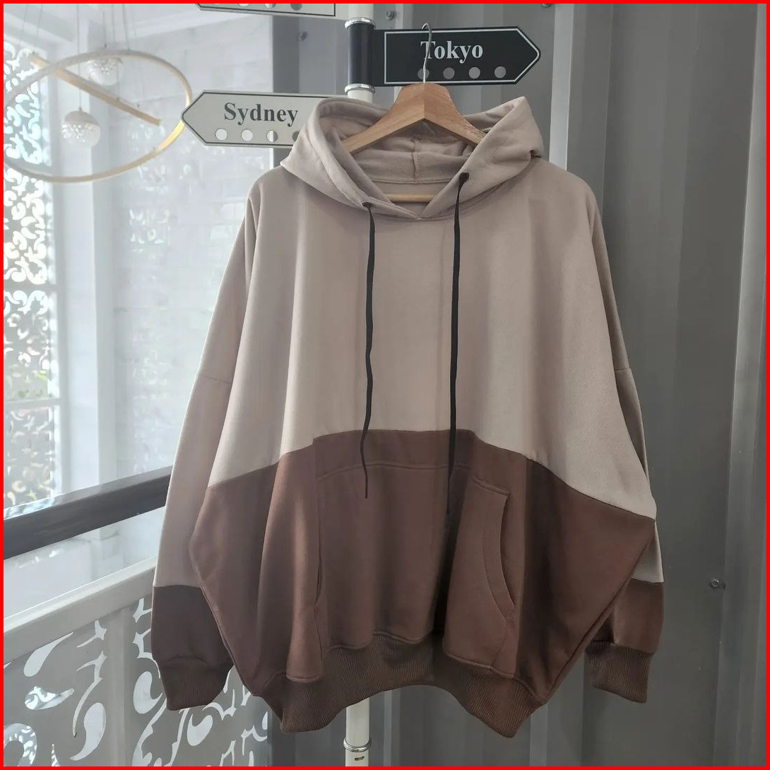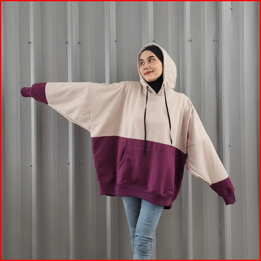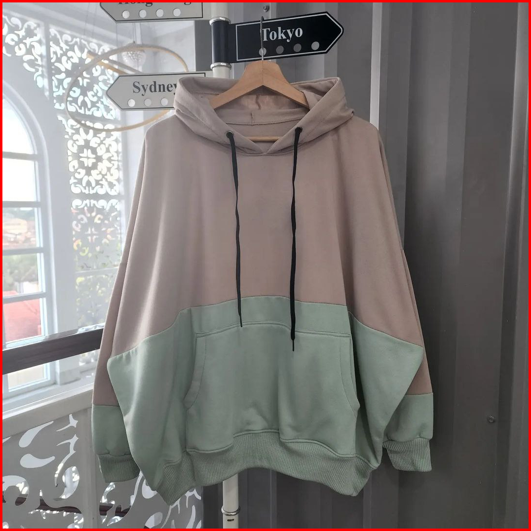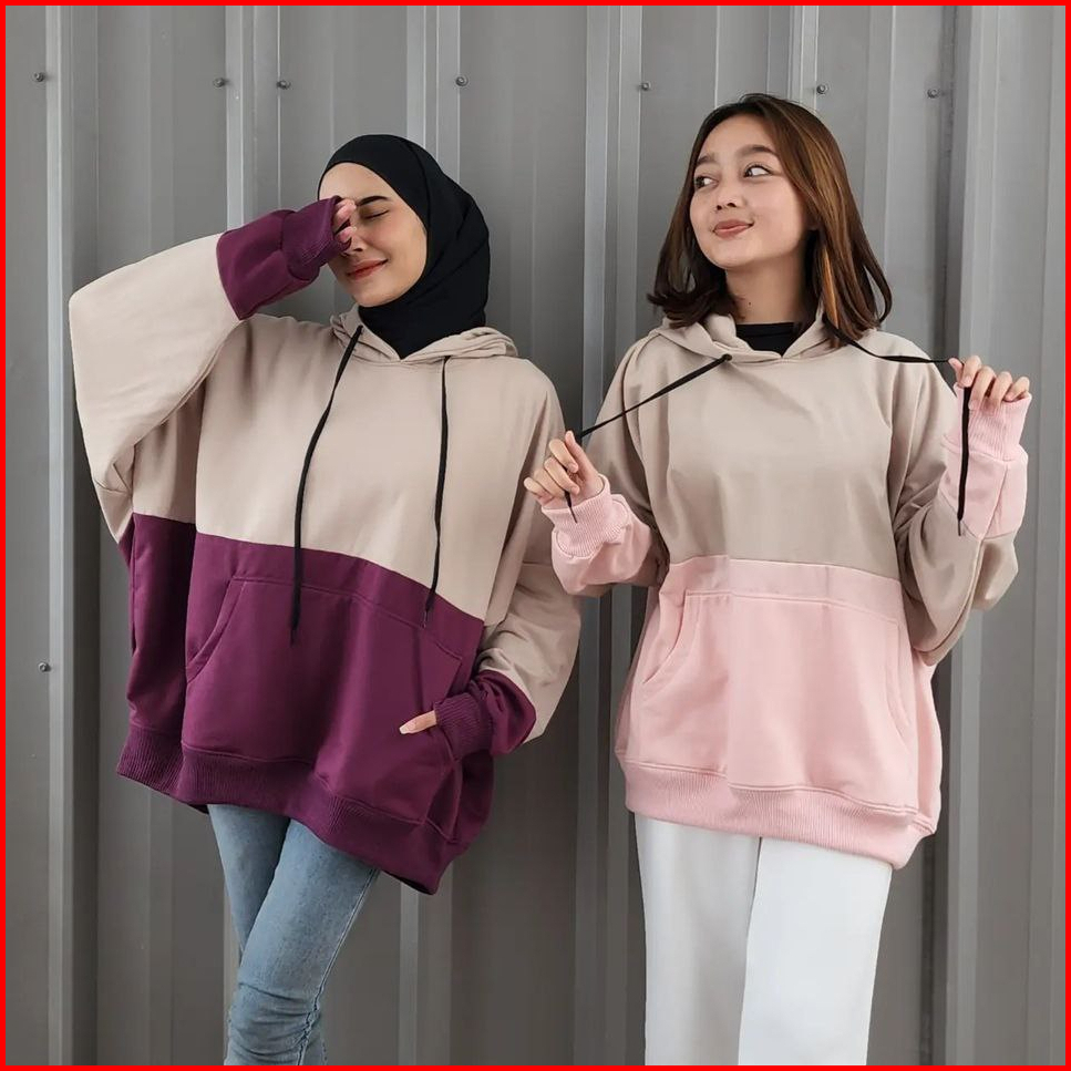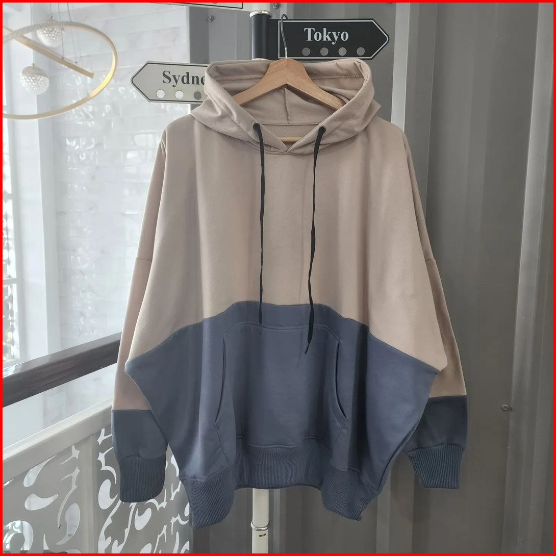 Nara.grosir - Batwing Jumbo 2tone Hodie L Hodie Oversize