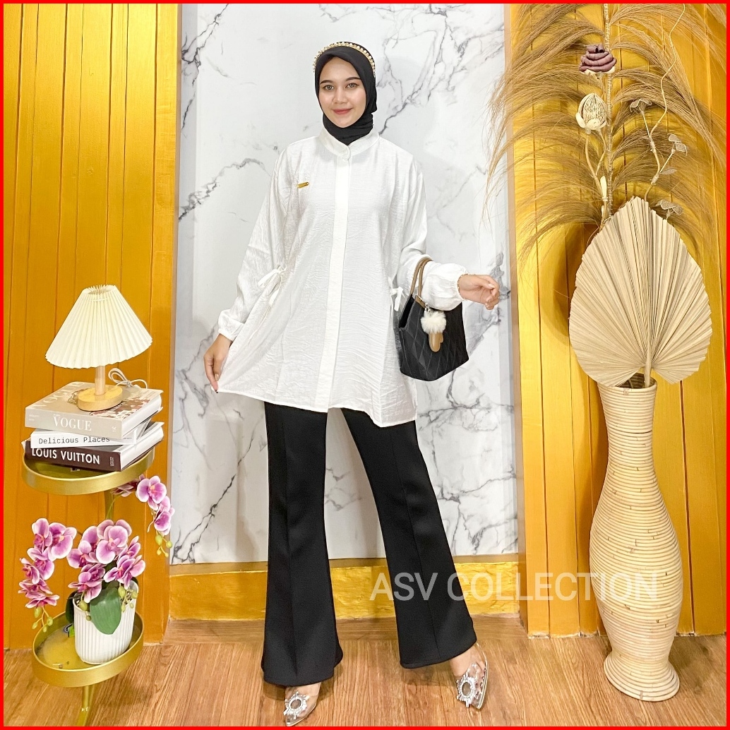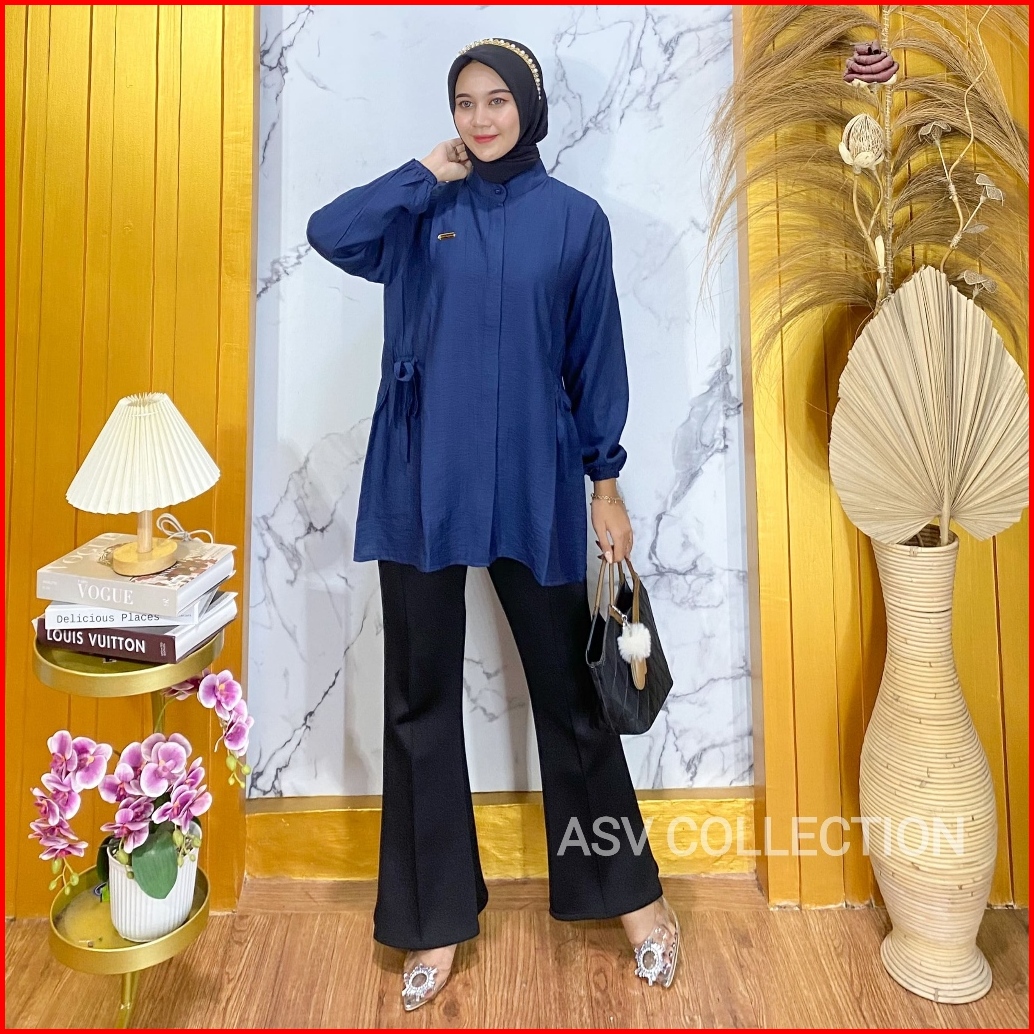 Blouse Alea Semi Tunik Polo Linen Preimum Tali Samping Ld 110cm Dan Ld 125cm