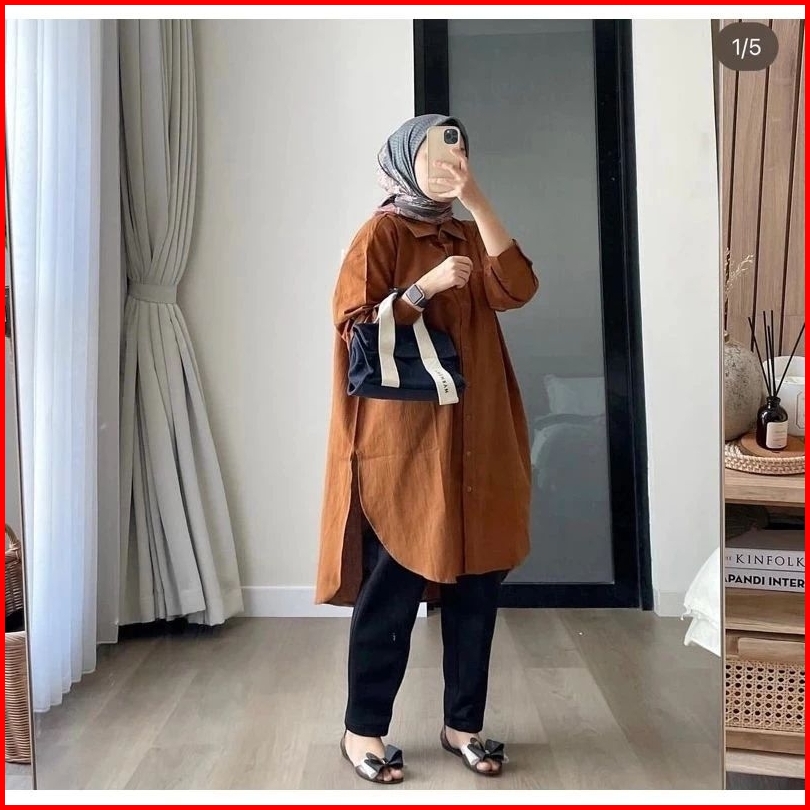 Kemeja Long Tunik Cotton Linen Atasan Tunik