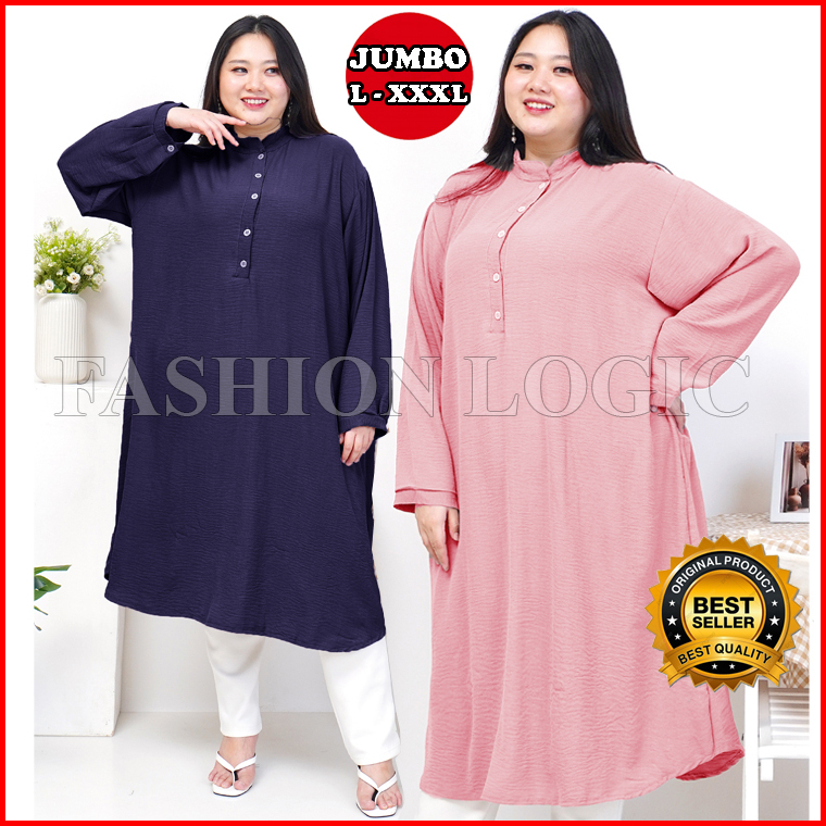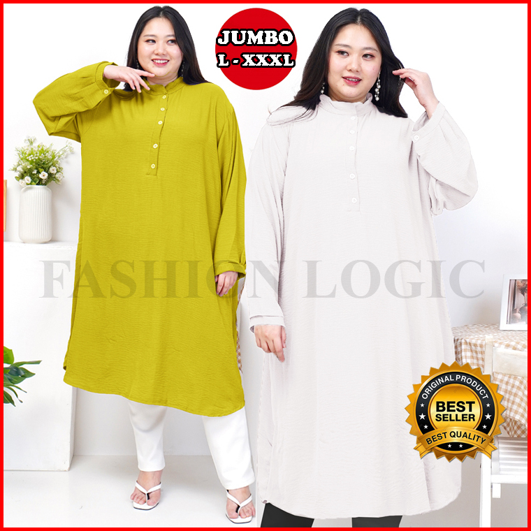 Fl Tunik Jumbo Wanita Crincle Airflow Ld 110 - 120 - 130 - 140 - Xl - Xxl