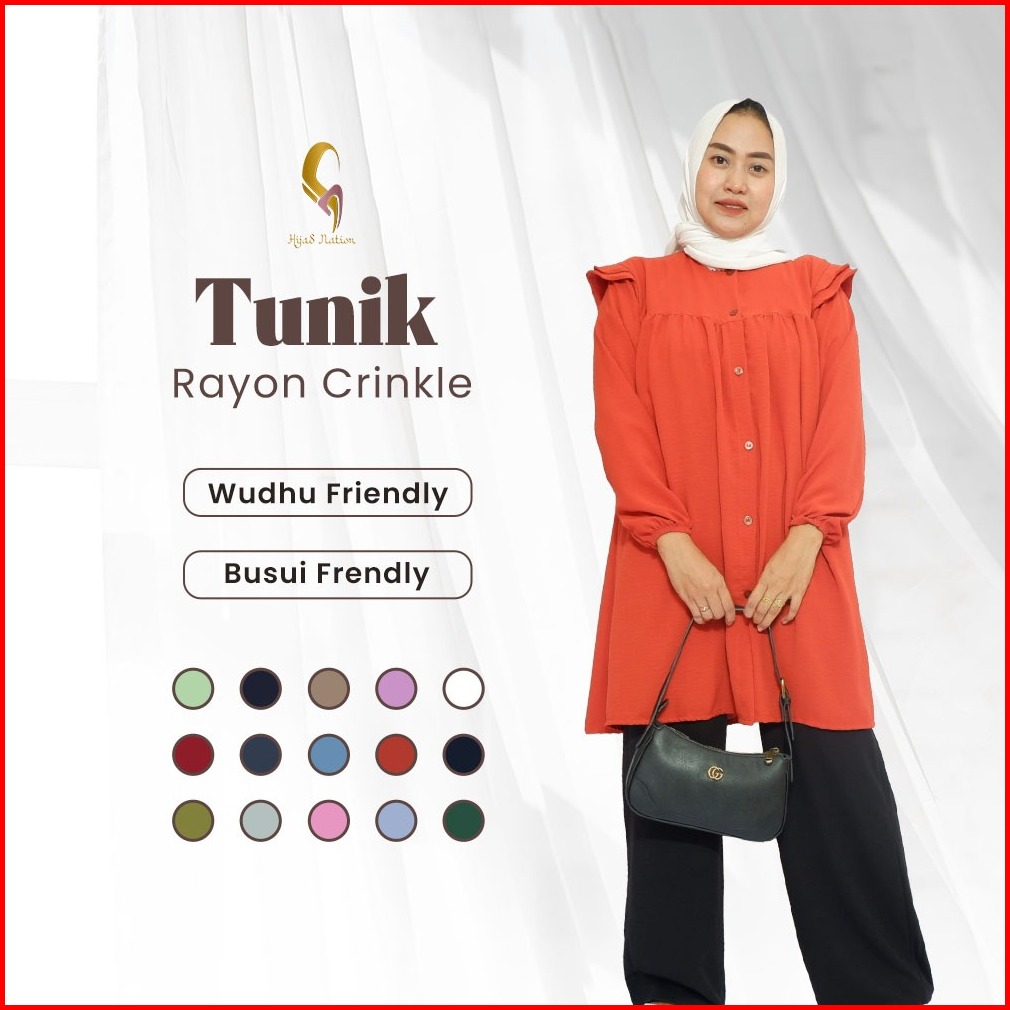 Hijab Nation - Tunik Jumbo Tunik Crinkle Airflow Tunik Rayon - Lebar Dada Ld 120 Cm Lebar Dada Ld 110 Cm - Tkc Korean