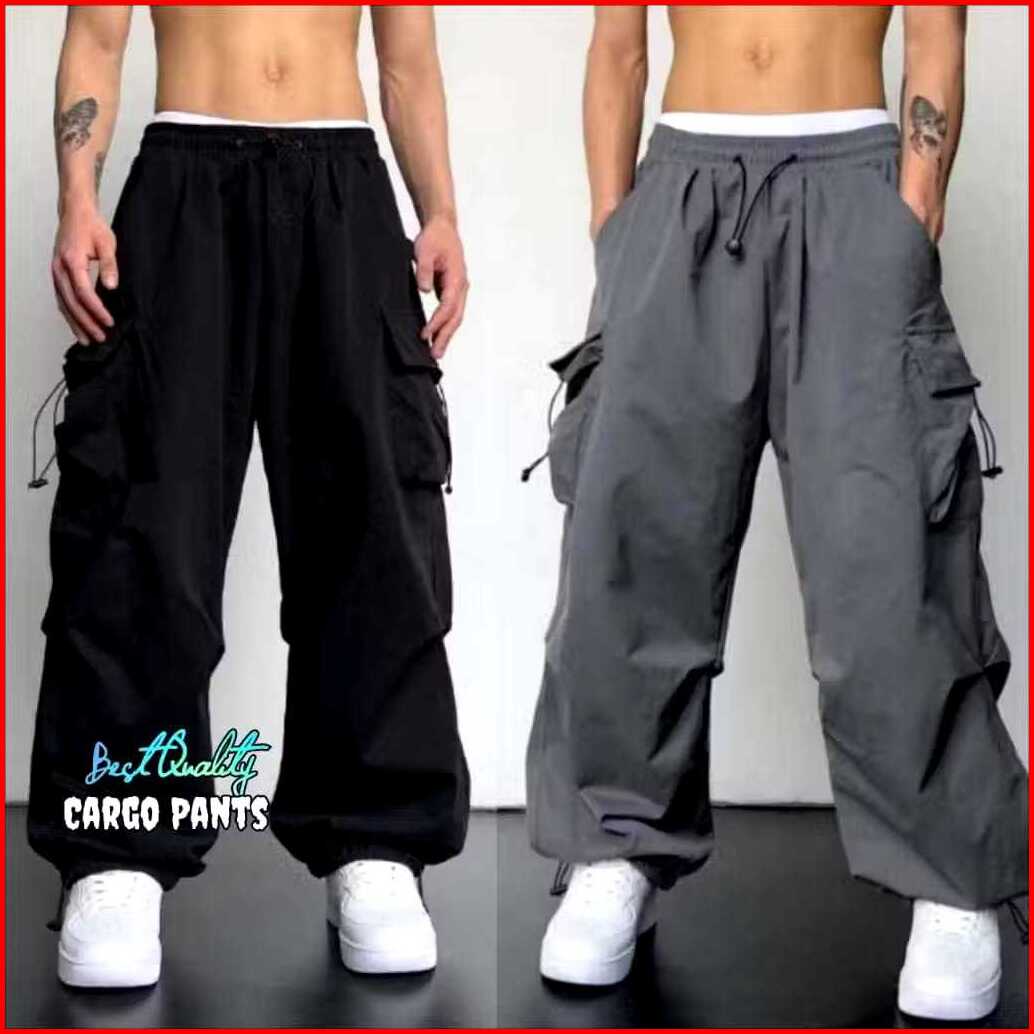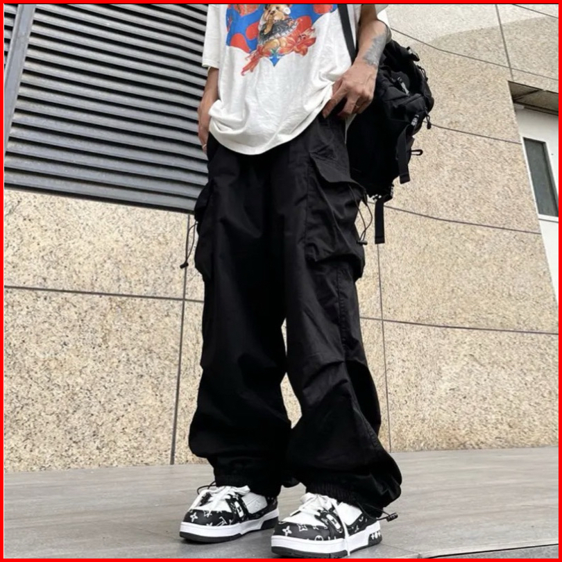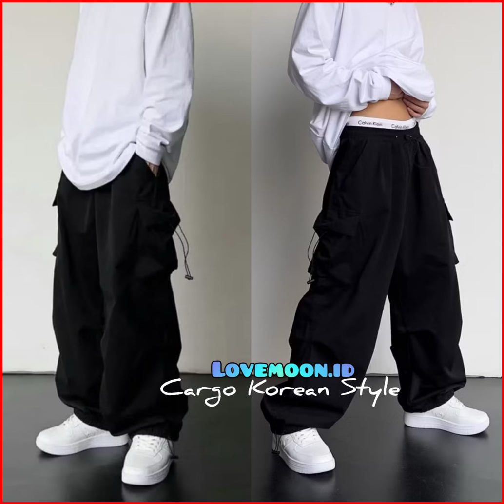 Terlaris Celana Cargo Panjang Pria - Celana Gombrong Korean Style Highwaist Hitam Celana Cargo