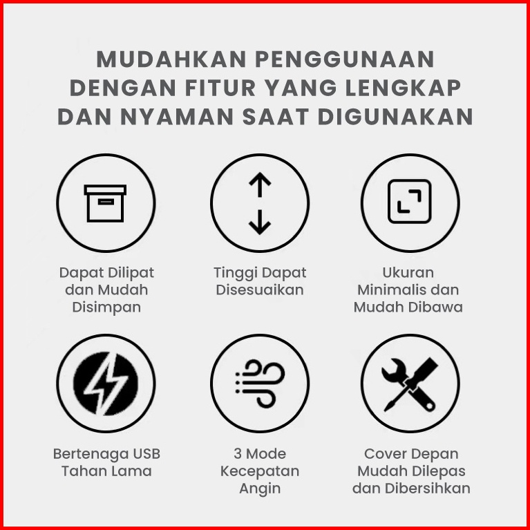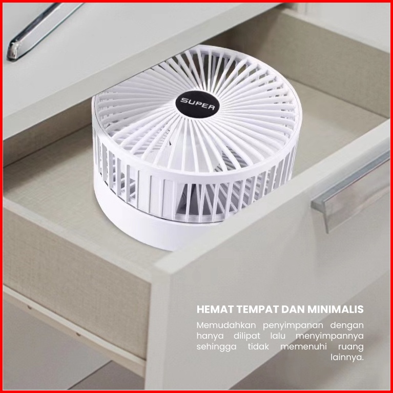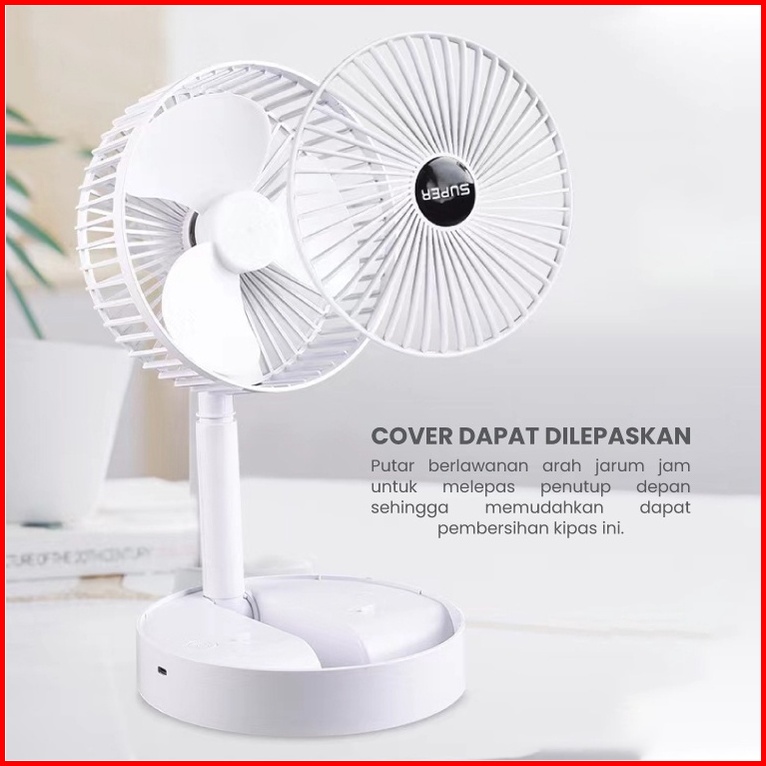 Dorahomi Kipas Angin Meja Lipat Portable Berdiri Usb Cas Baterai 2000mah Putar Naik Dan Turun 180 Cocok Untuk Kantor Per